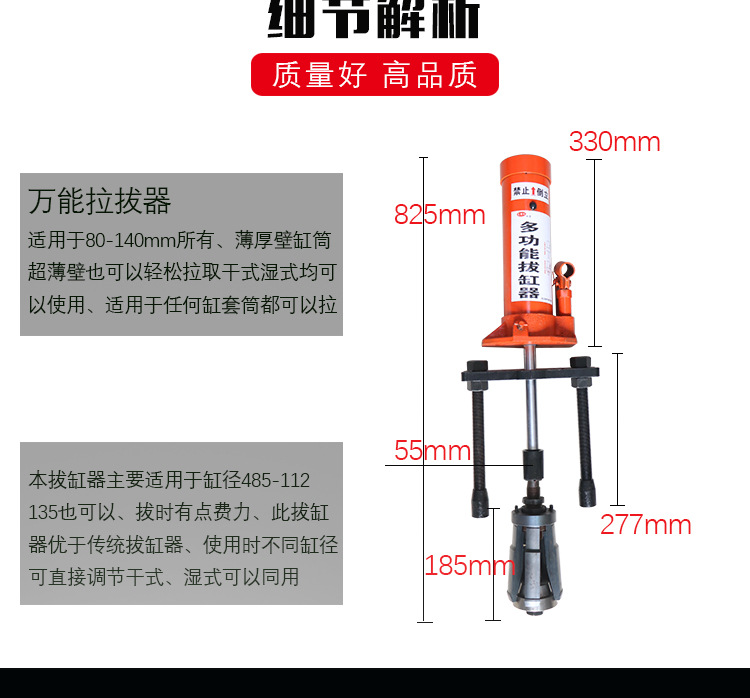 Extractor universal de cilindros hidráulicos, extractor de camisas de cilindro en seco y húmedo, extractor de barriles de cilindro, herramienta universal para barriles de cilindro de pared delgada.