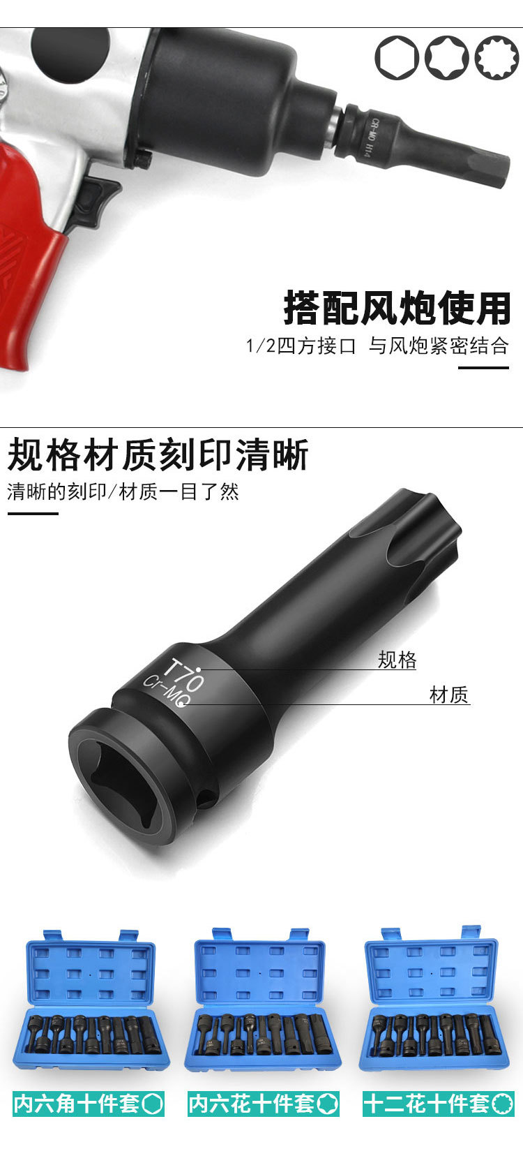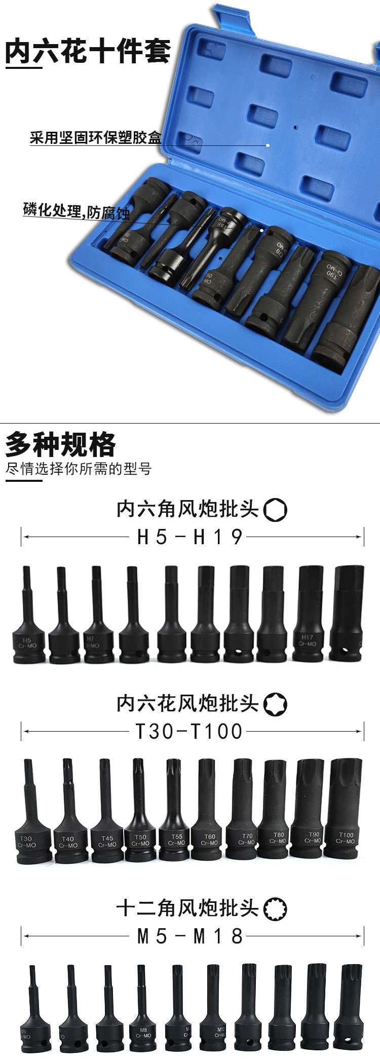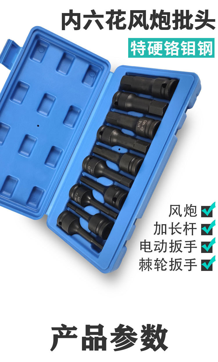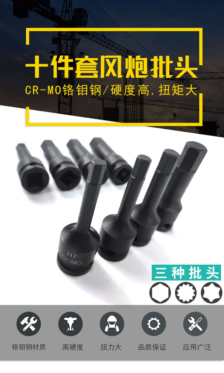 Neumático de una sola pieza interior conjunto de seis flores destornillador neumático manga T30-100 interior cabeza de lote de seis flores serie T