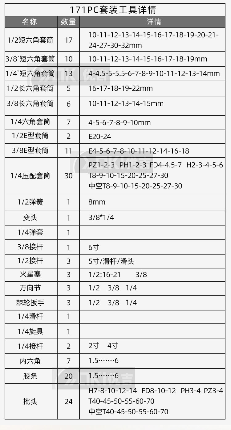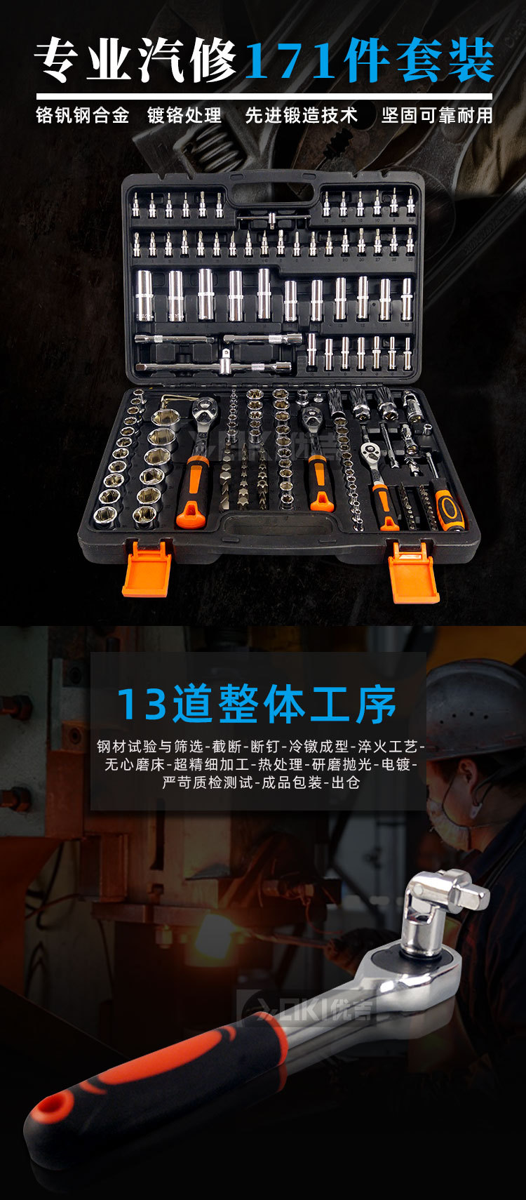 171-piece kit de reparación de automóviles combinación llave de enchufe coche Kit de belleza Kit