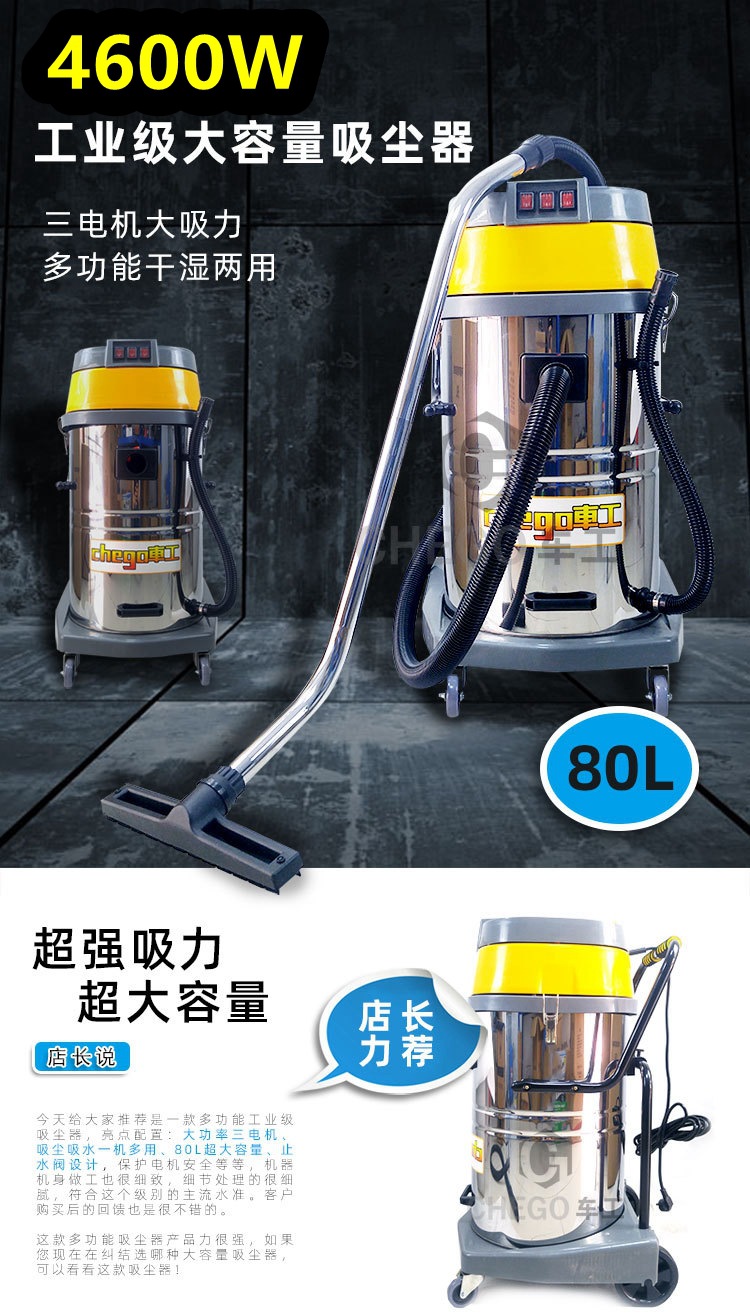 Venta al por mayor aspiradora industrial comercial súper fuerte succión de polvo 4600W fábrica taller Hotel máquina de succión de agua 80L