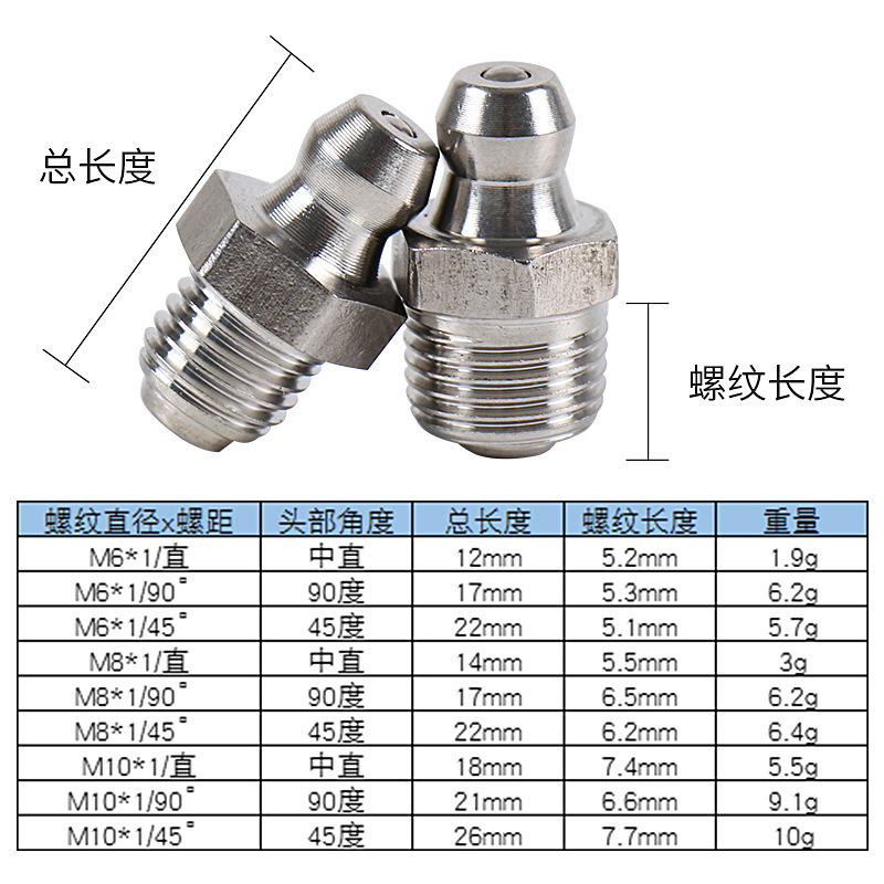 Boquilla de engrase niquelada estándar nacional, accesorios para cabezal de pistola de engrase M6M8M10, portátil, específicamente para reparación de automóviles.