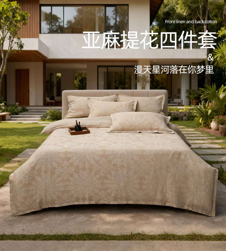 Francia lino de cuatro piezas Jacquard proceso de rocío de lluvia lino invierno engrosado edredón ligero sábanas de cama al por mayor