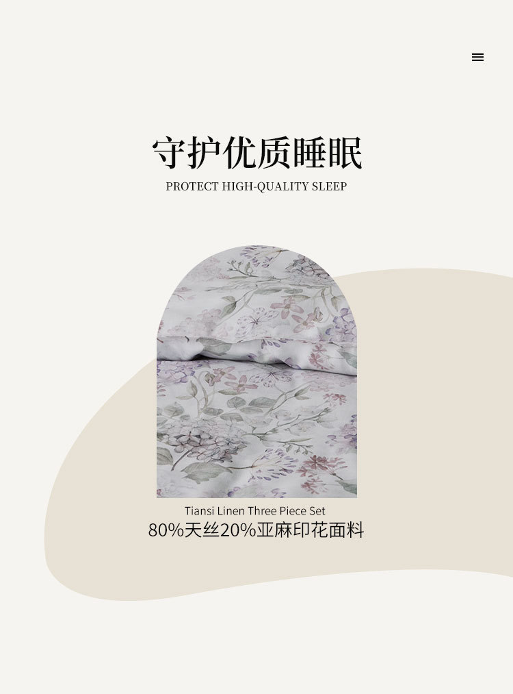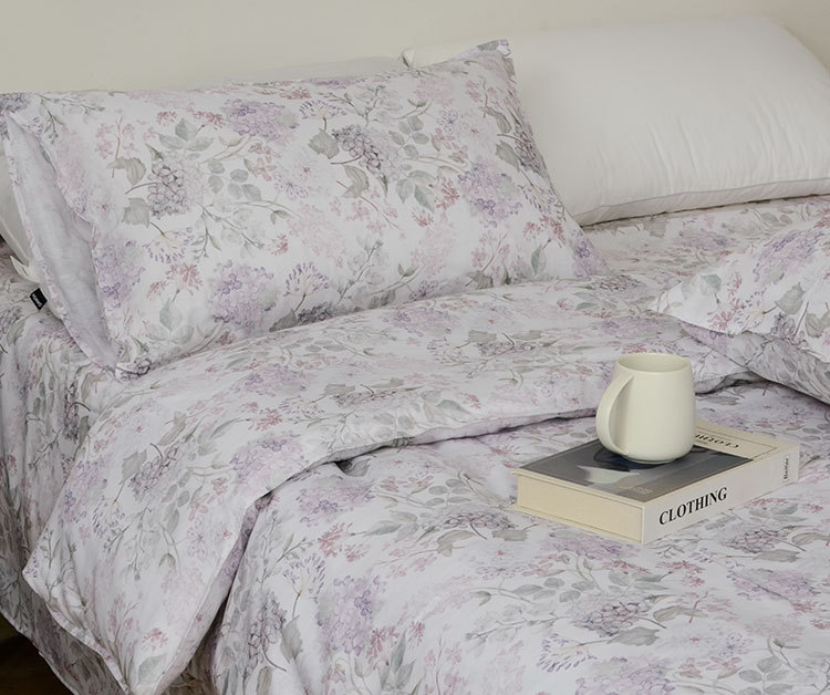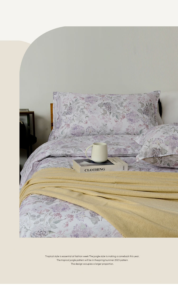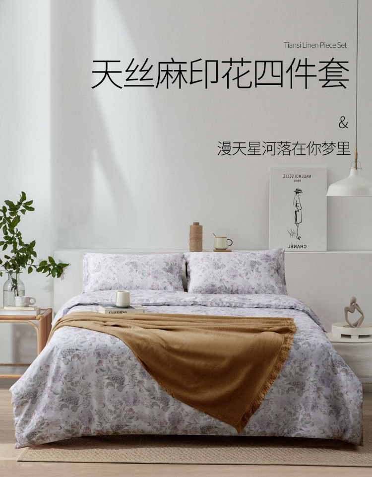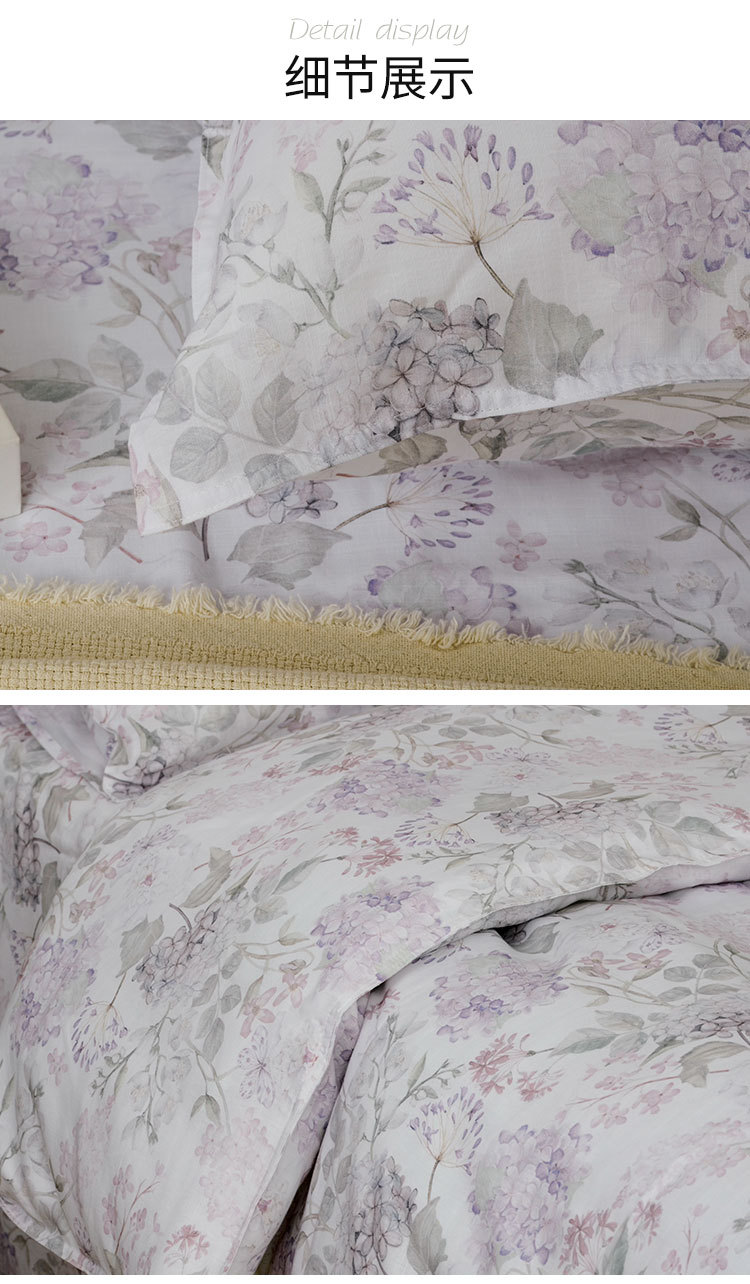 Luz de lujo Tencel Lino conjunto de cuatro piezas estilo pastoral impresión francés lluvia ropa de cama edredón cubierta hoja de cama al por mayor