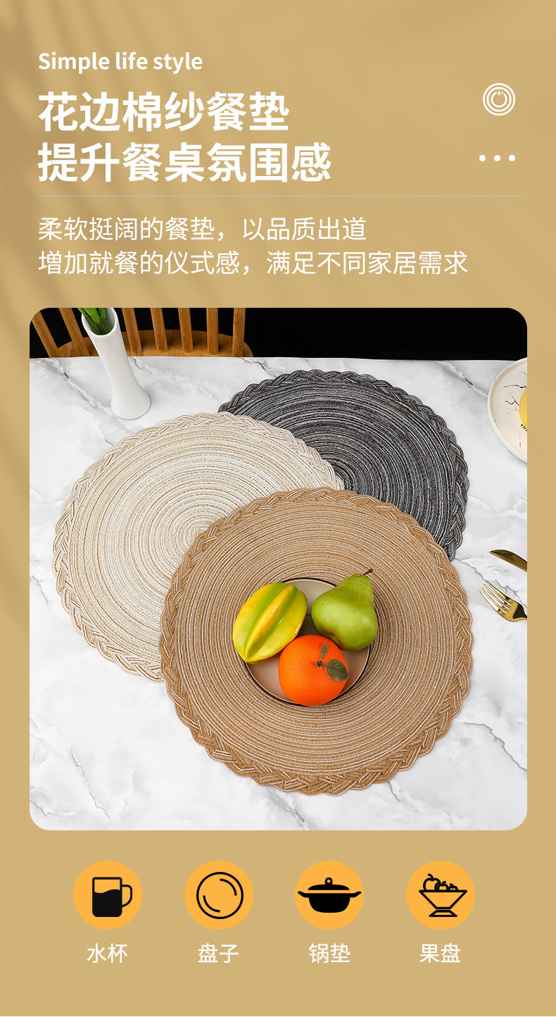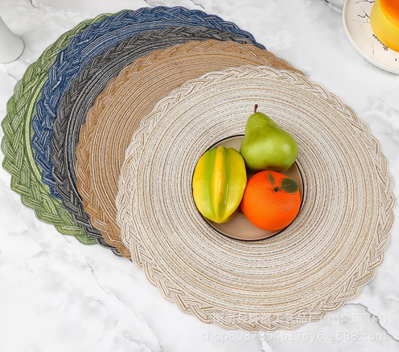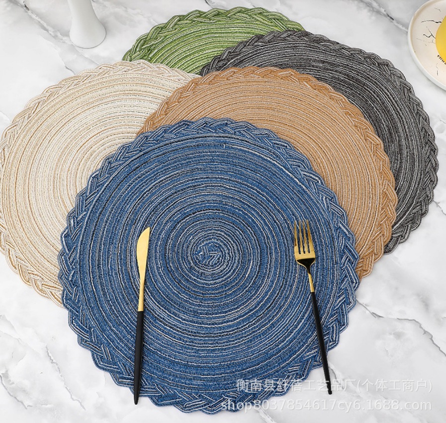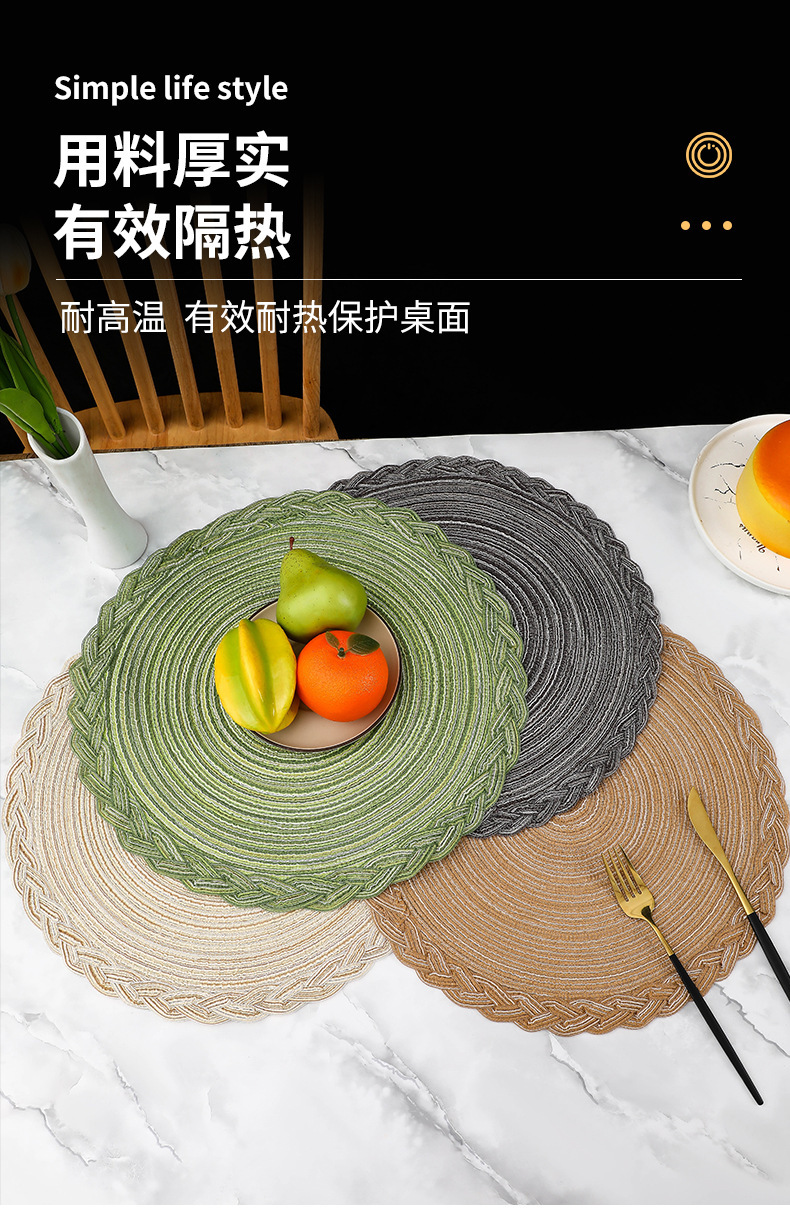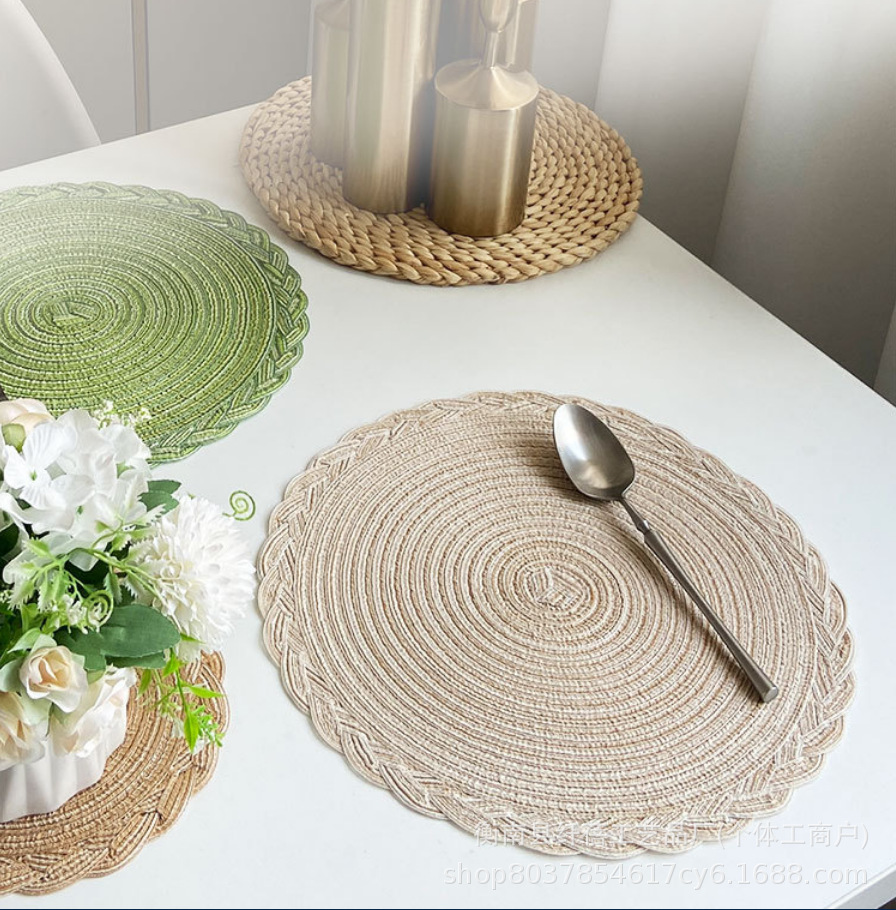 Añadir almohadilla de encaje de hilo de estilo nórdico rami trenzado almohadilla de encaje de algodón redondo almohadilla de mesa de comedor occidental almohadilla aislante de cubierta transfronteriza