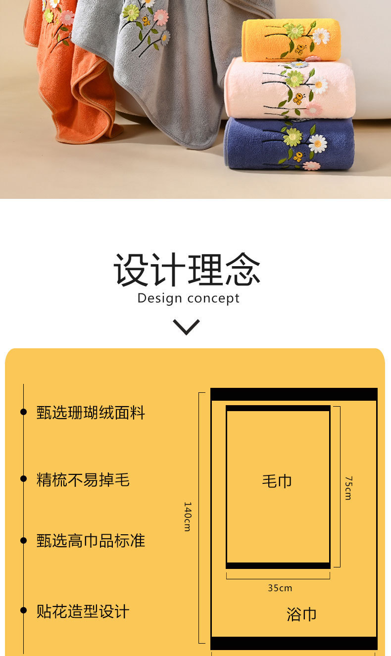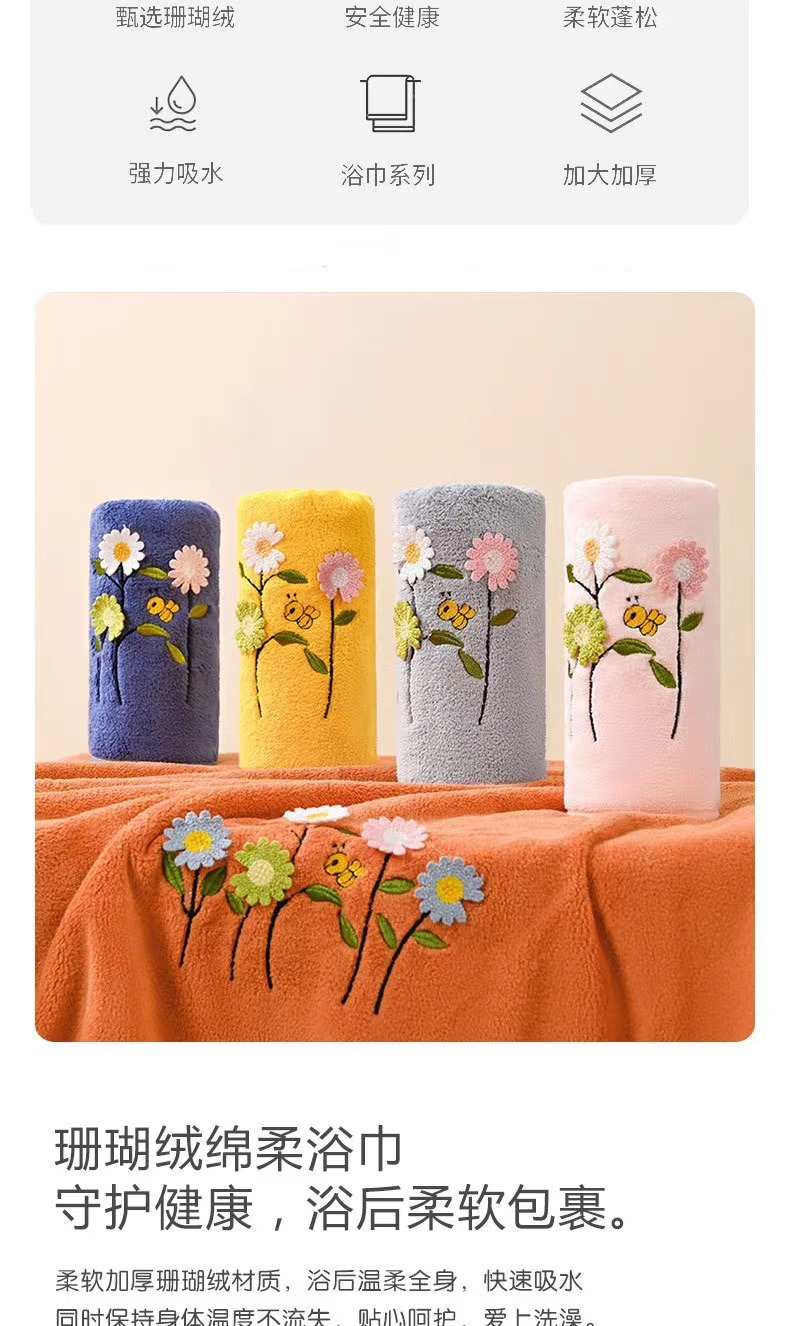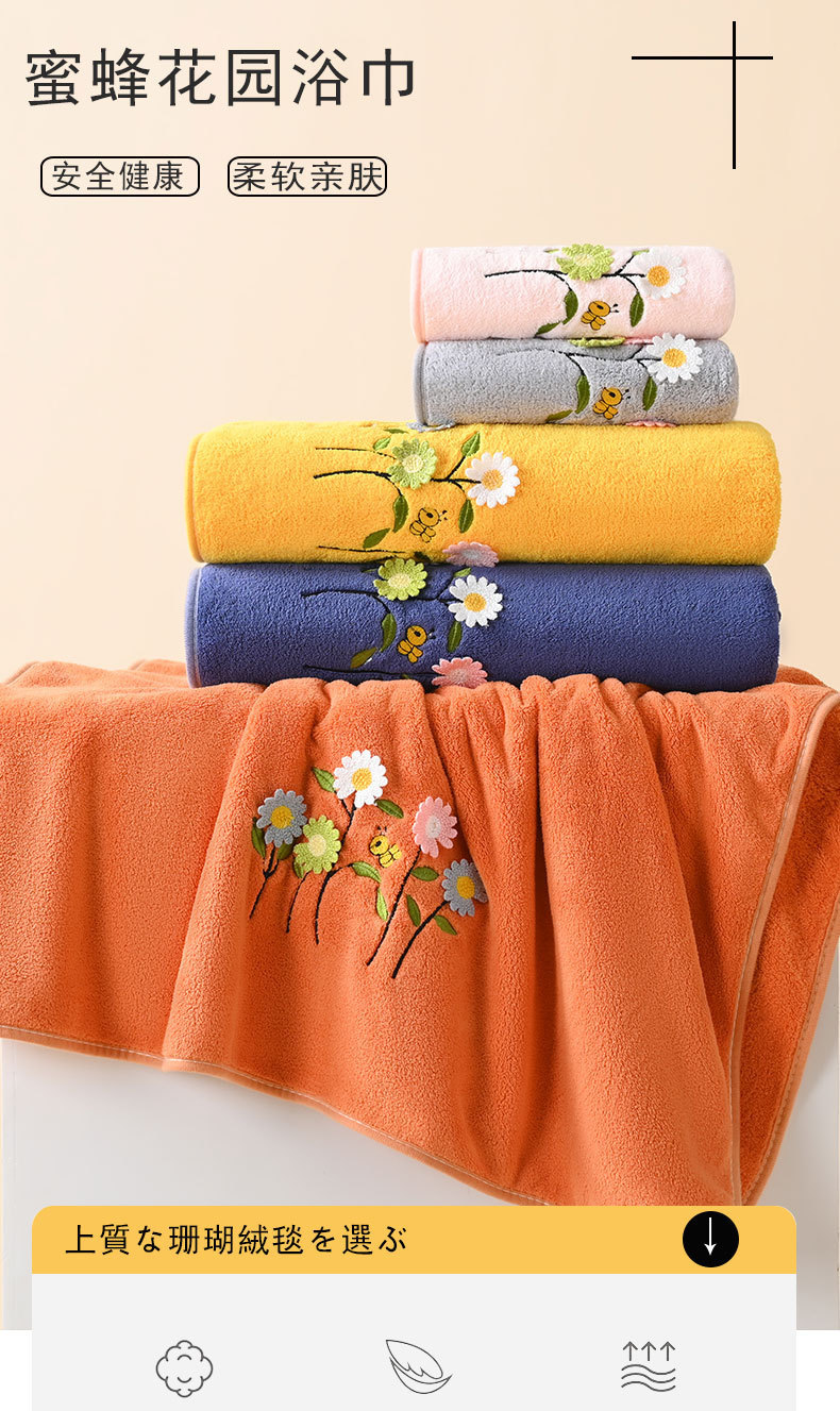 Toallas de baño de dibujos animados set de bordado espeso vello de coral absorción rápida secado adulto toallas caseras regalos al por mayor
