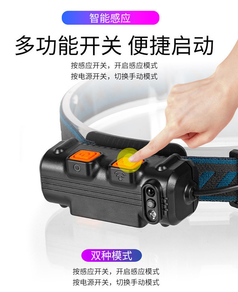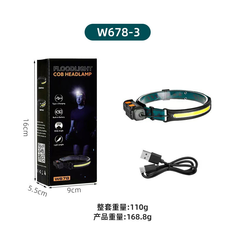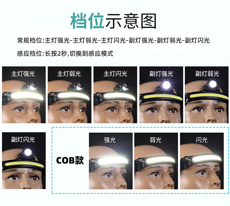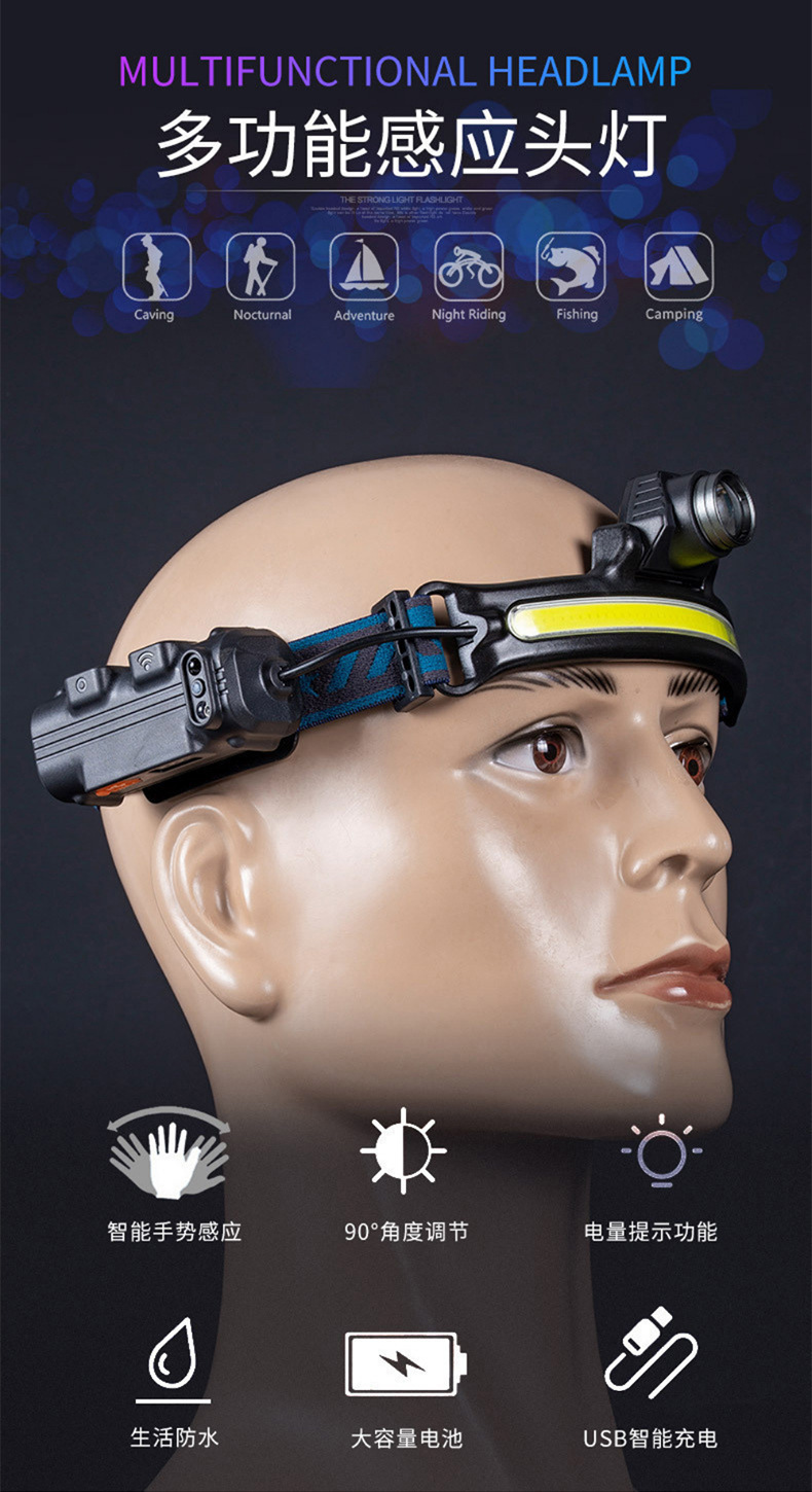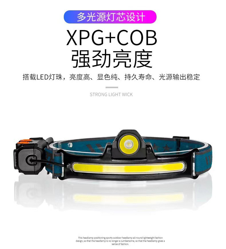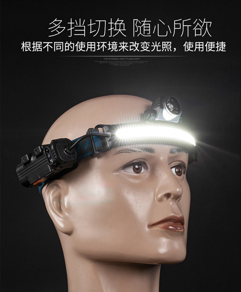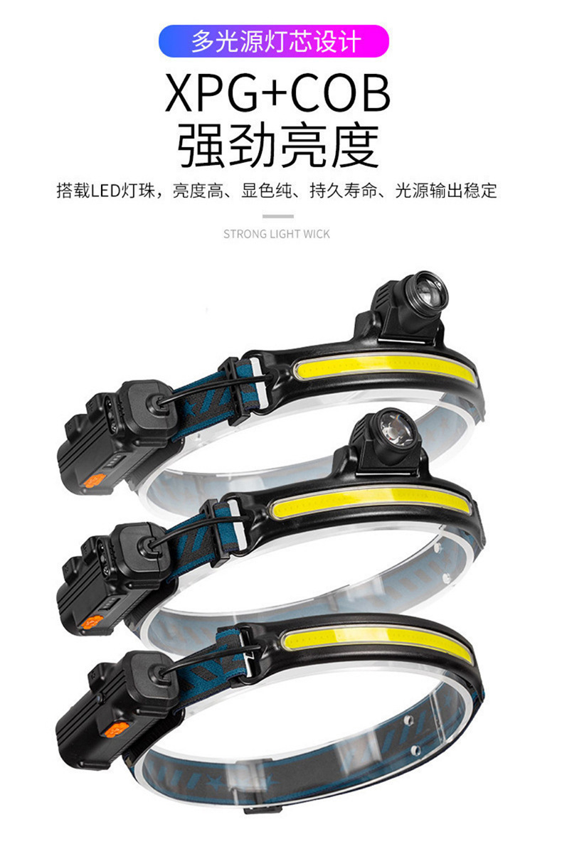 Cross-border nueva linterna montada en la cabeza luz de inducción de trabajo COB luz de cabeza calva fuerte luz de viaje al aire libre luz de pesca nocturna