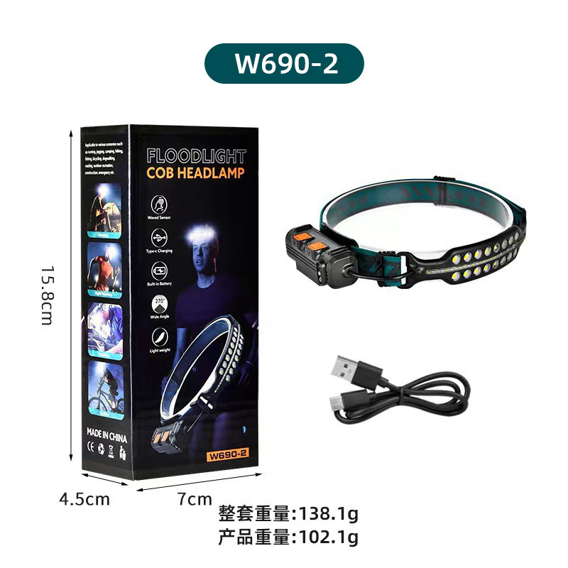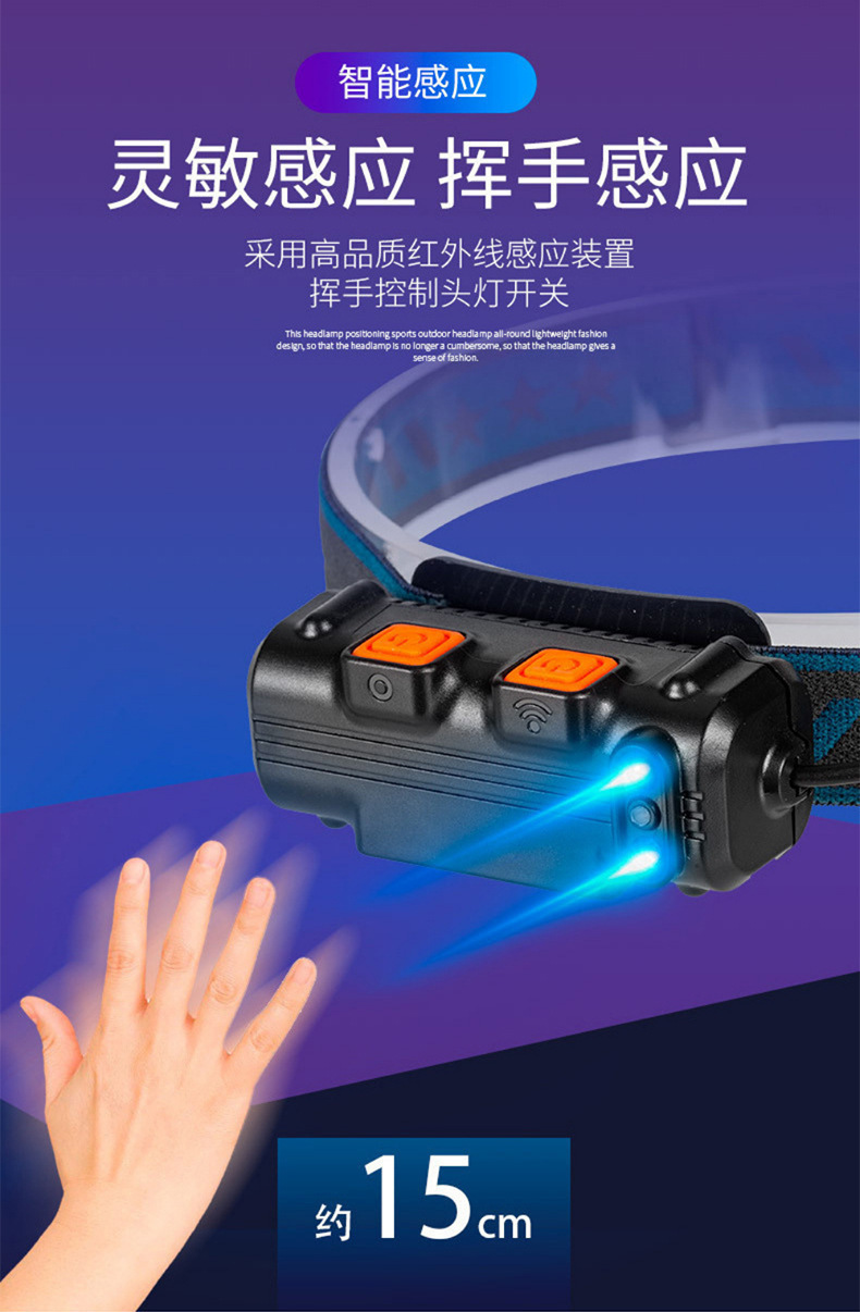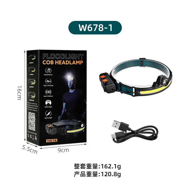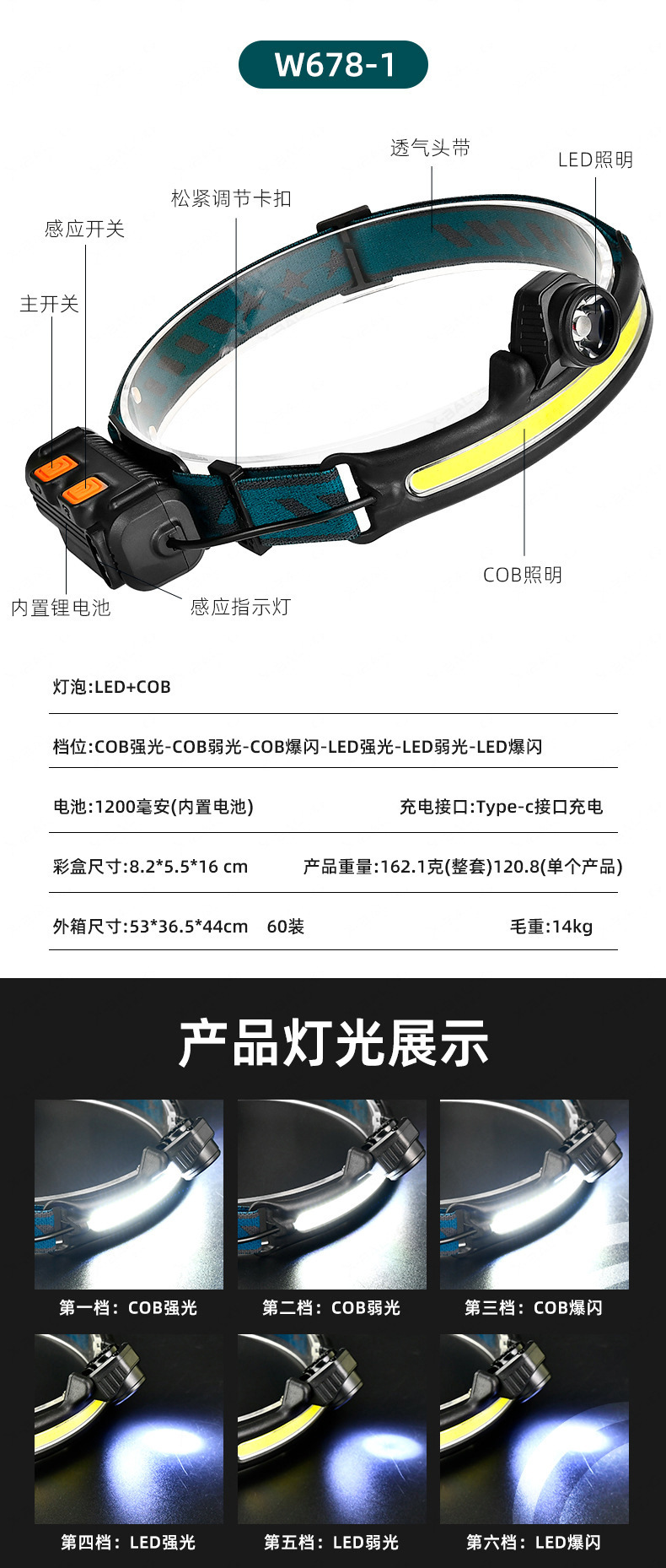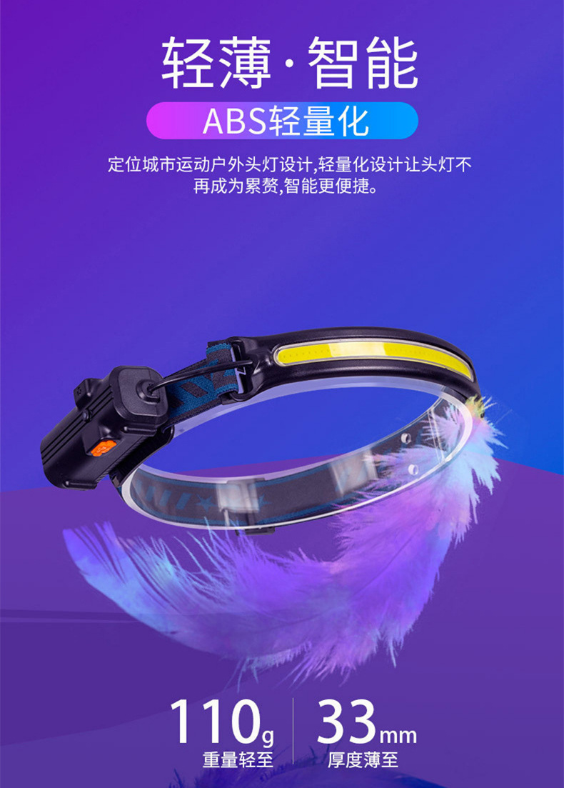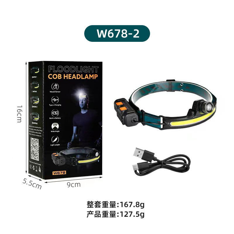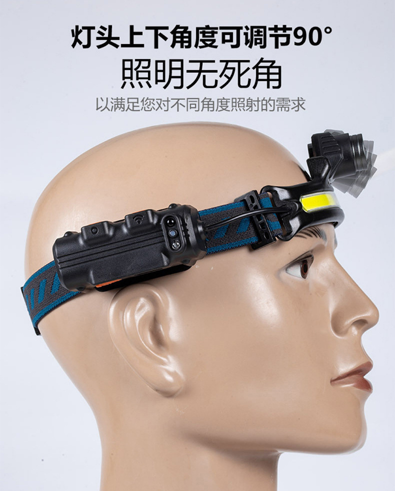 Cross-border nueva linterna montada en la cabeza luz de inducción de trabajo COB luz de cabeza calva fuerte luz de viaje al aire libre luz de pesca nocturna