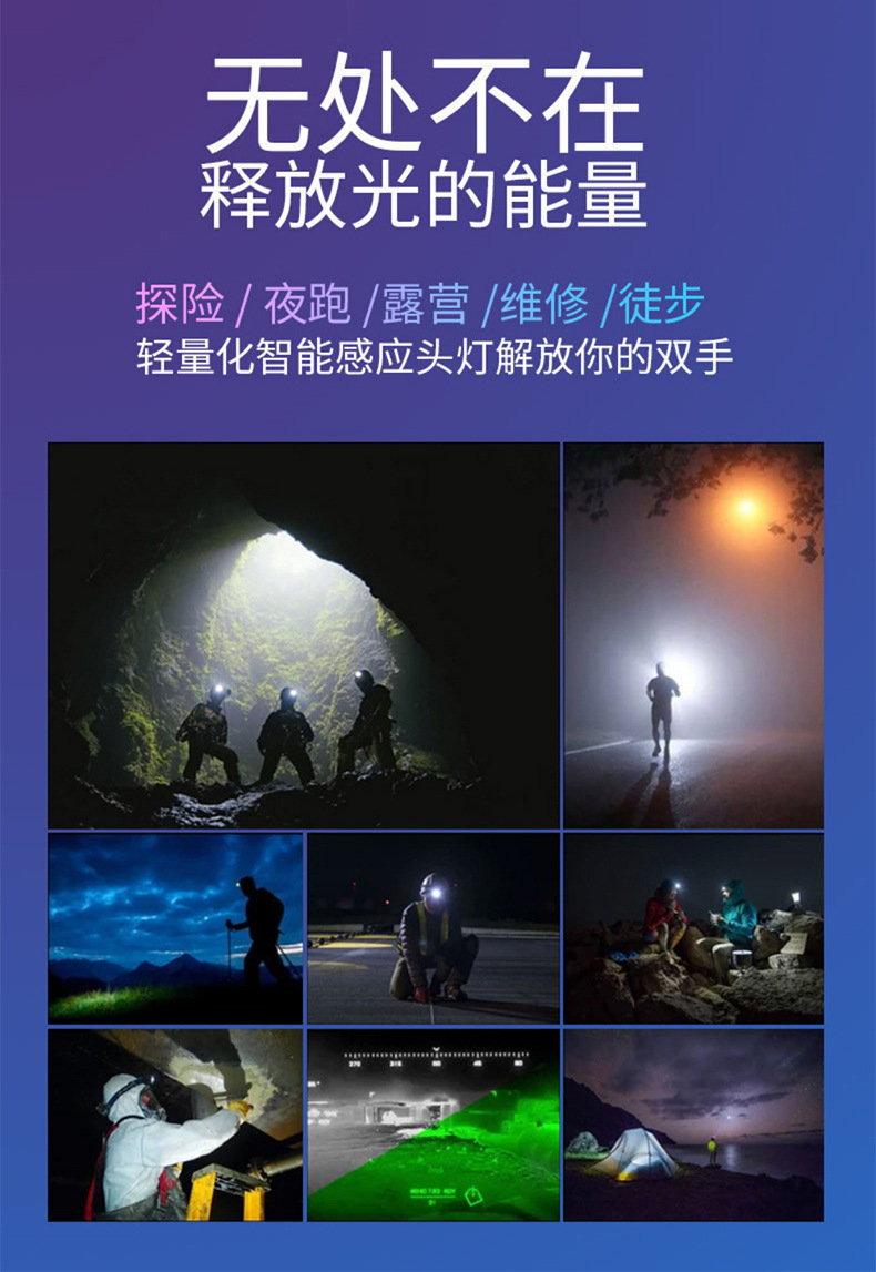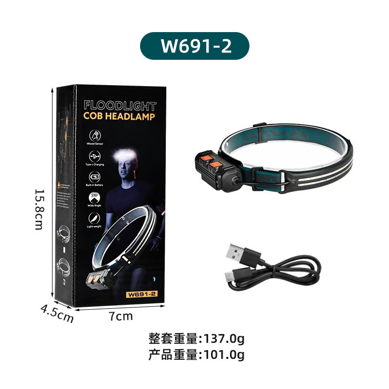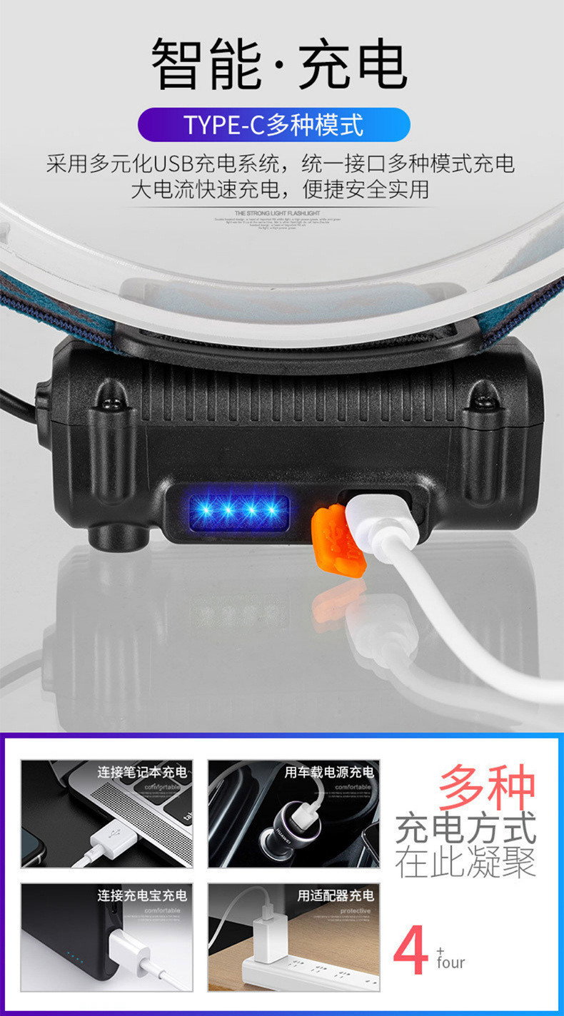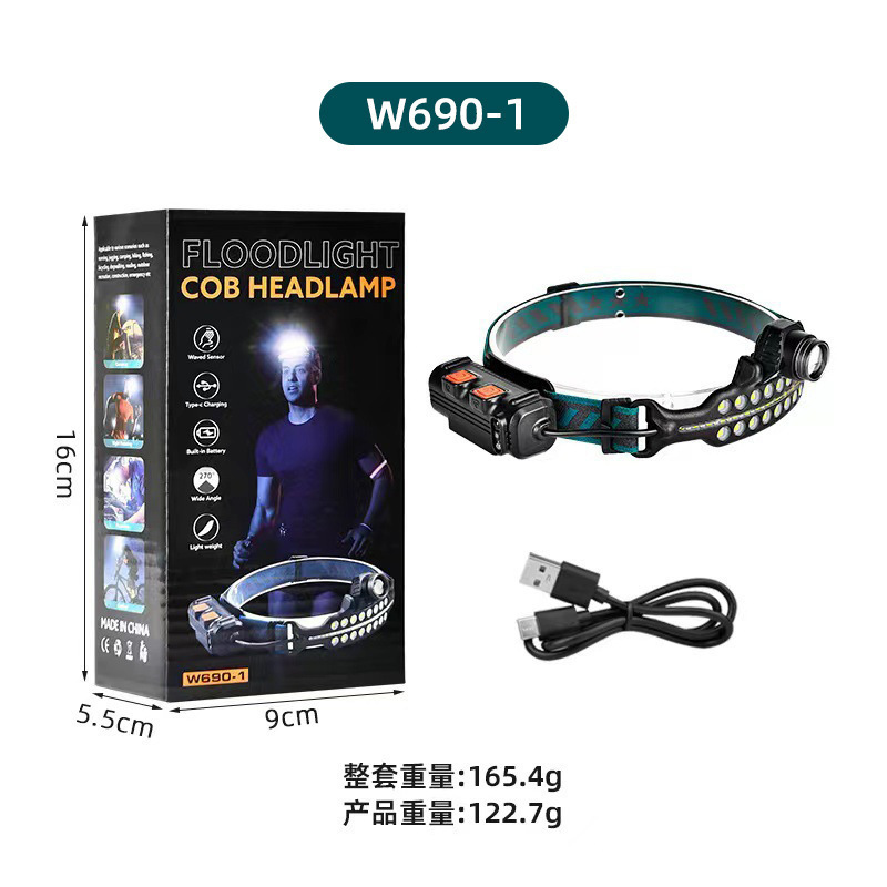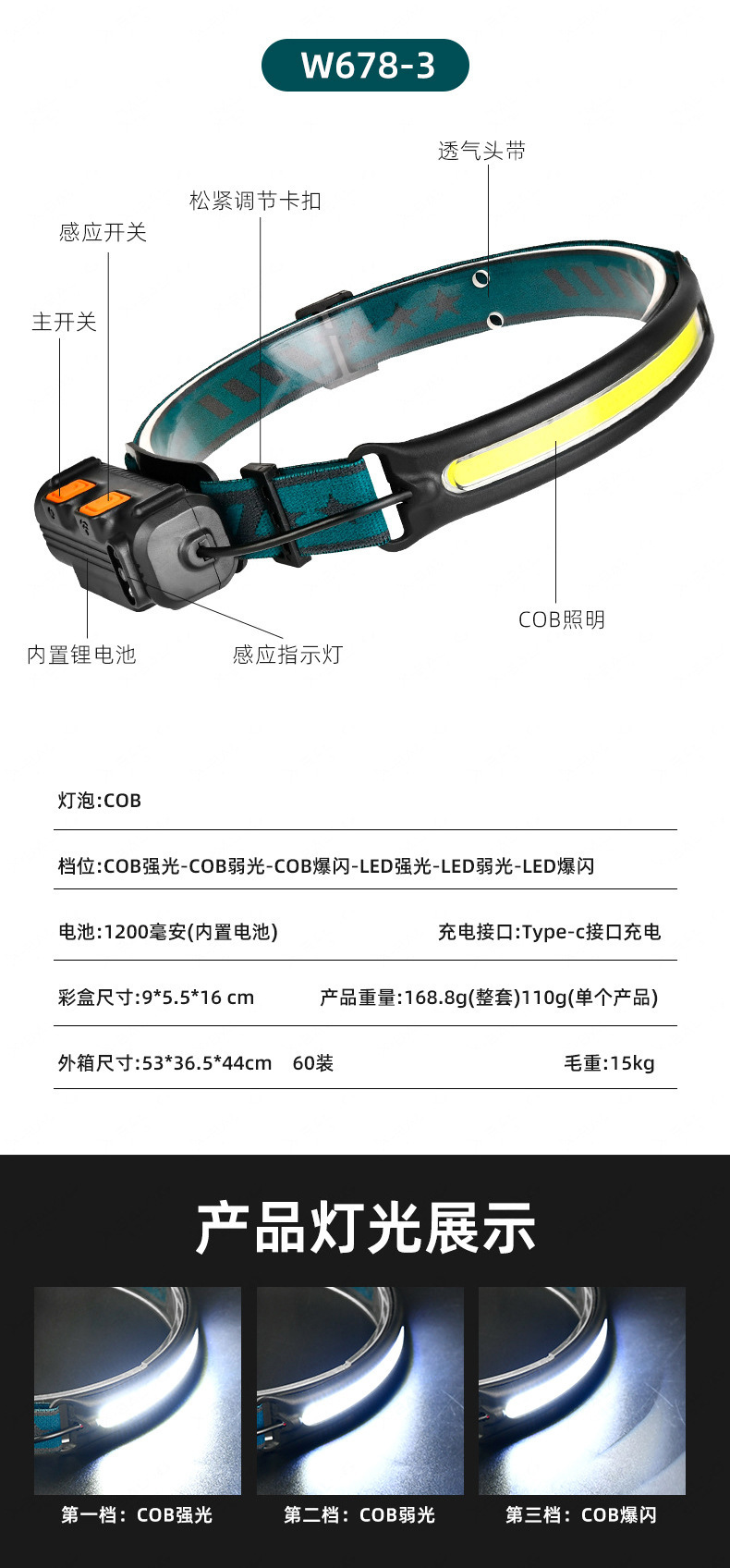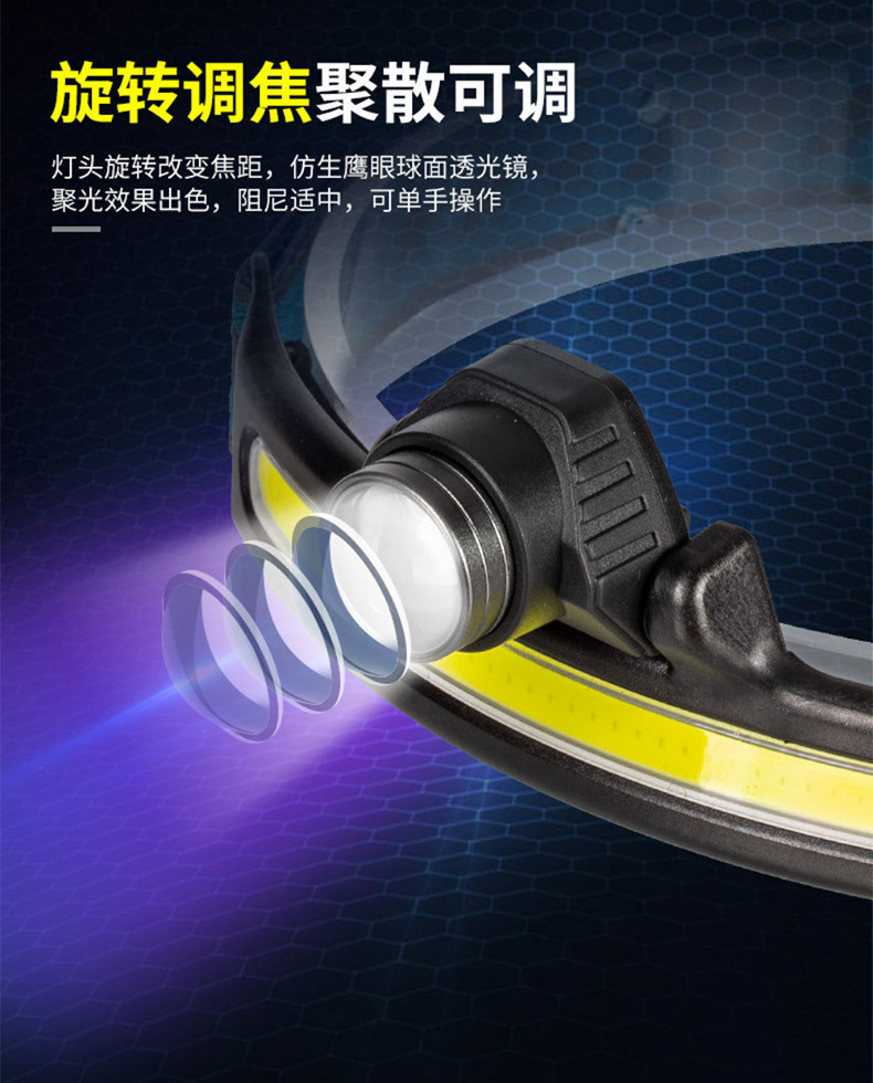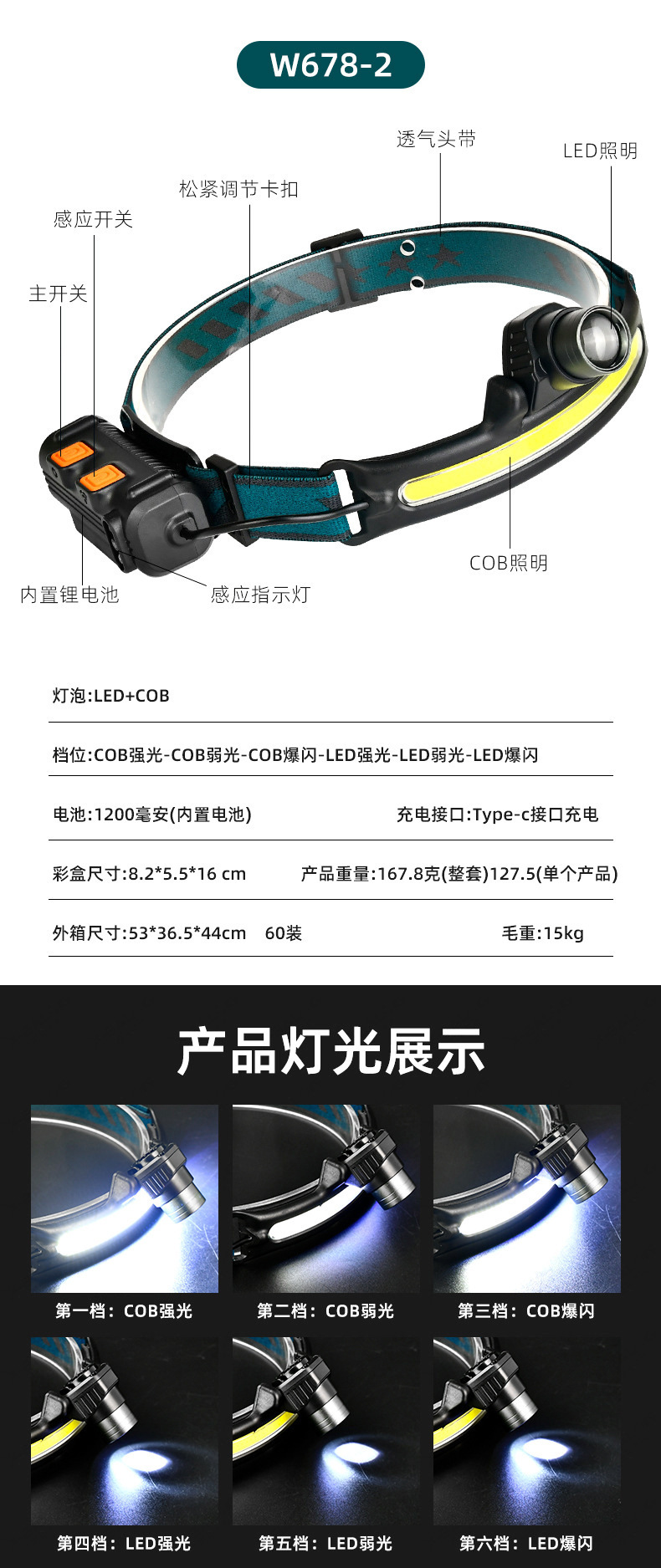 Cross-border nueva linterna montada en la cabeza luz de inducción de trabajo COB luz de cabeza calva fuerte luz de viaje al aire libre luz de pesca nocturna