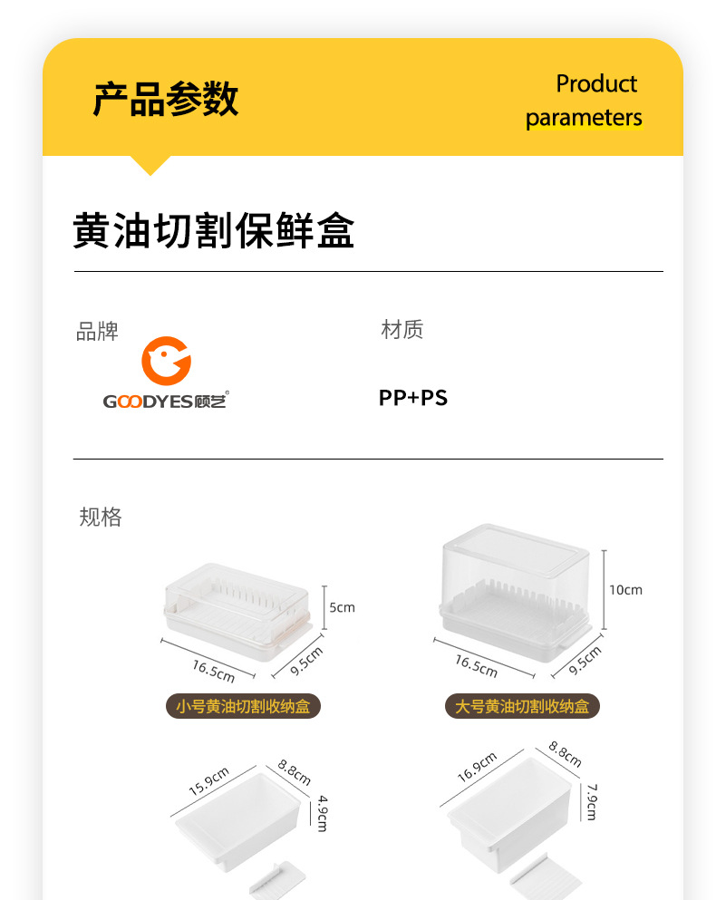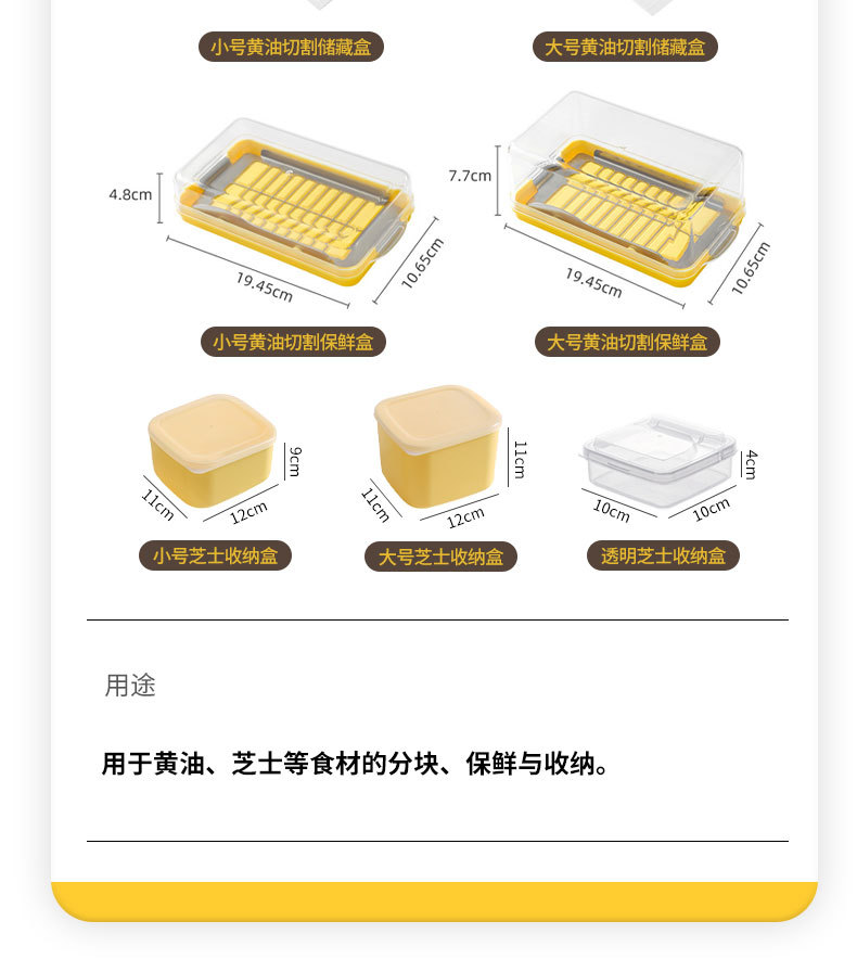 | Especificaciones | Caja de almacenamiento de corte de mantequilla-Pequeño,Caja de almacenamiento de corte de mantequilla-grande,Caja de almacenamiento de corte de mantequilla-pequeña,Caja de almacenamiento de corte de mantequilla-grande,Caja de conservación fresca de corte de mantequilla pequeña,Caja de almacenamiento fresco de corte de mantequilla-grande,Caja de almacenamiento de queso-pequeño,Caja de almacenamiento de queso transparente |