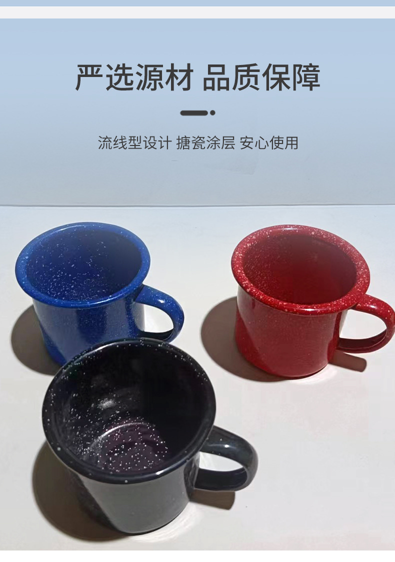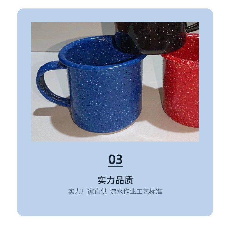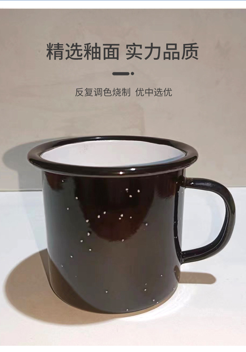 Color engrosado con puntos negros puntos blancos tazas de esmalte tazas logotipo impreso retro al por mayor bordes vintage taza de té