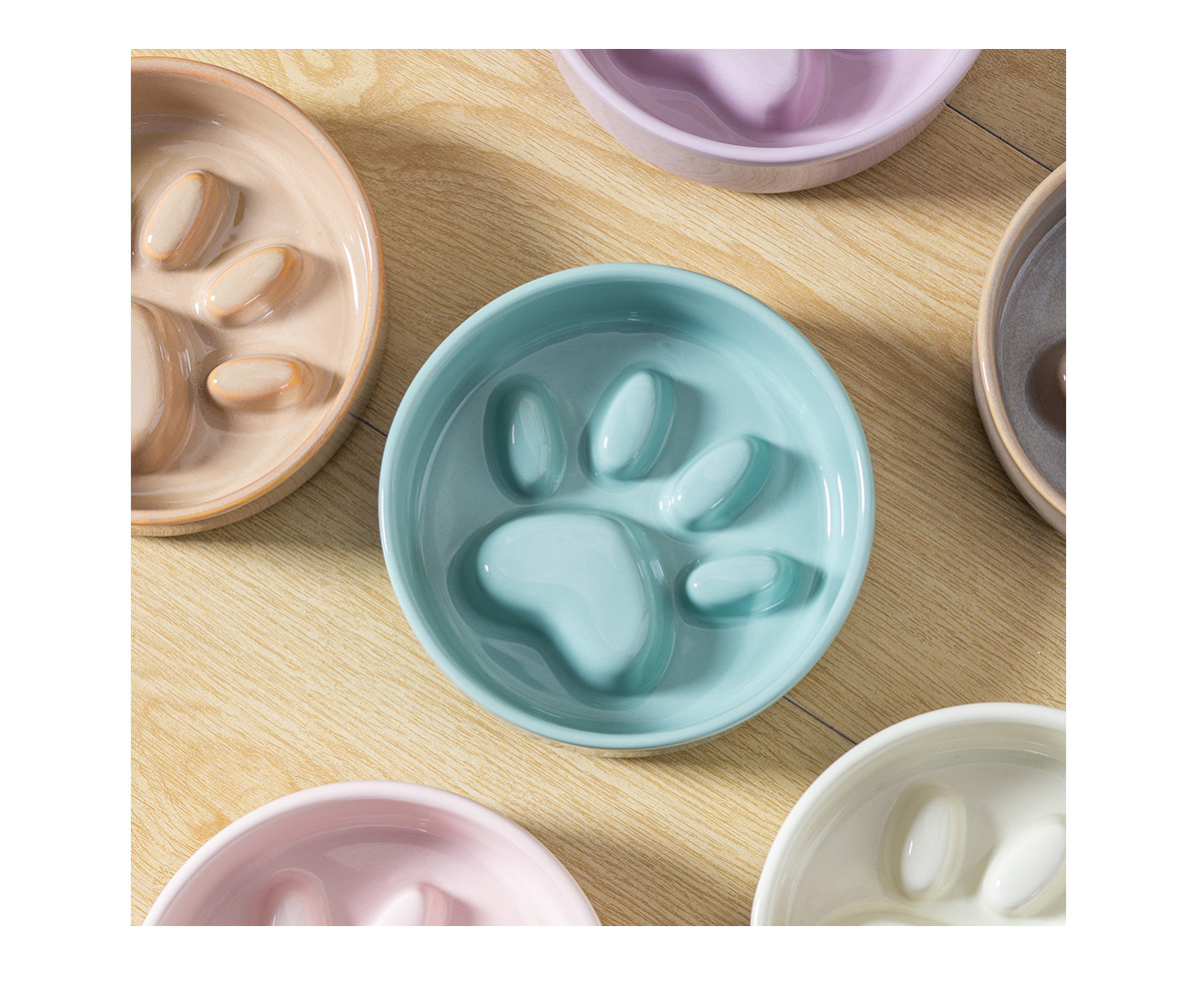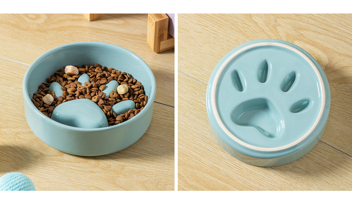 Cuenco de comida lenta de color crema de garra de gato con marco de bambú, cuenco de cerámica para perros y gatos, cuenco de comida lenta para perros, cuenco de comida para perros, cuenco anti-asfixia