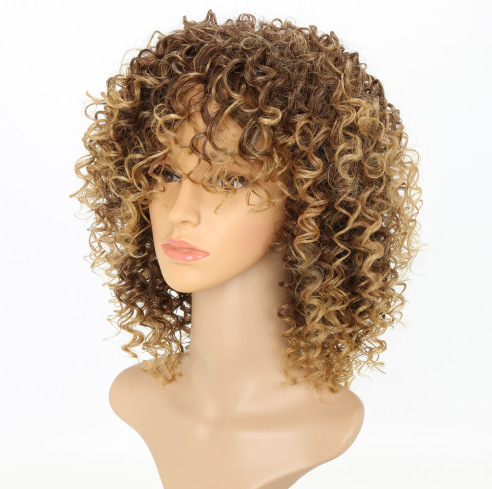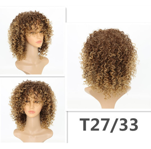 Europa y América pelucas de cabello rollo africano de fibra de fibra química de alta temperatura para mujeres fabricantes de venta caliente