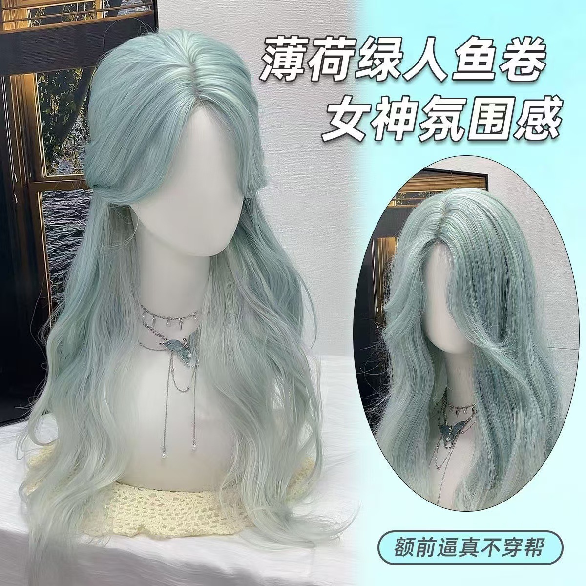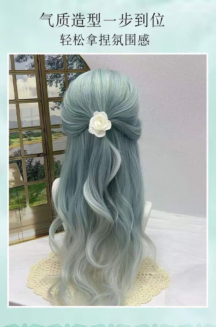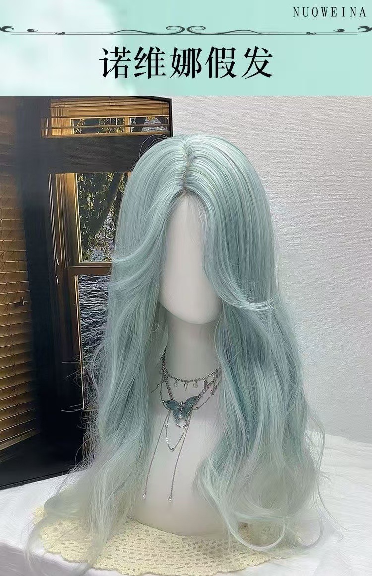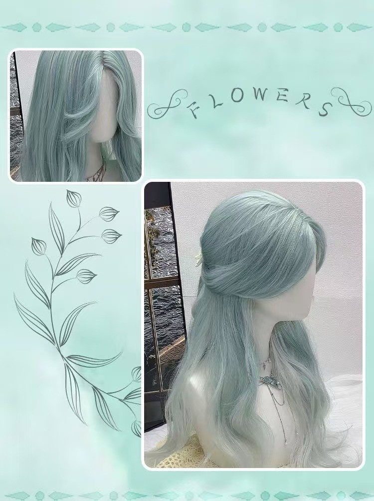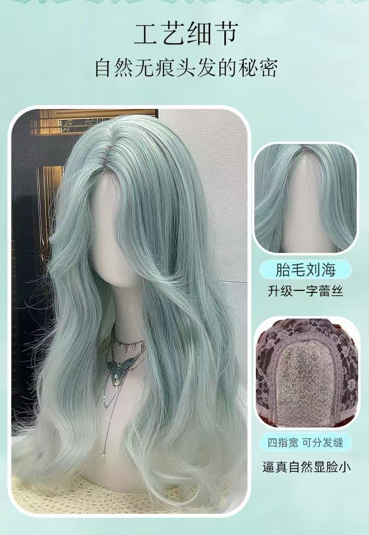 Sal de mar de menta fantasía gradiente menta verde octeto franja frente de encaje atmósfera sensación peluca cos universal B04