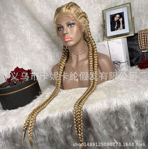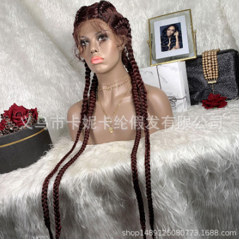 Amazon transfronterizo de cuatro hebras trenzadas frente de encaje de fibra química cubierta de cabeza trenzada peluca de encaje 0037