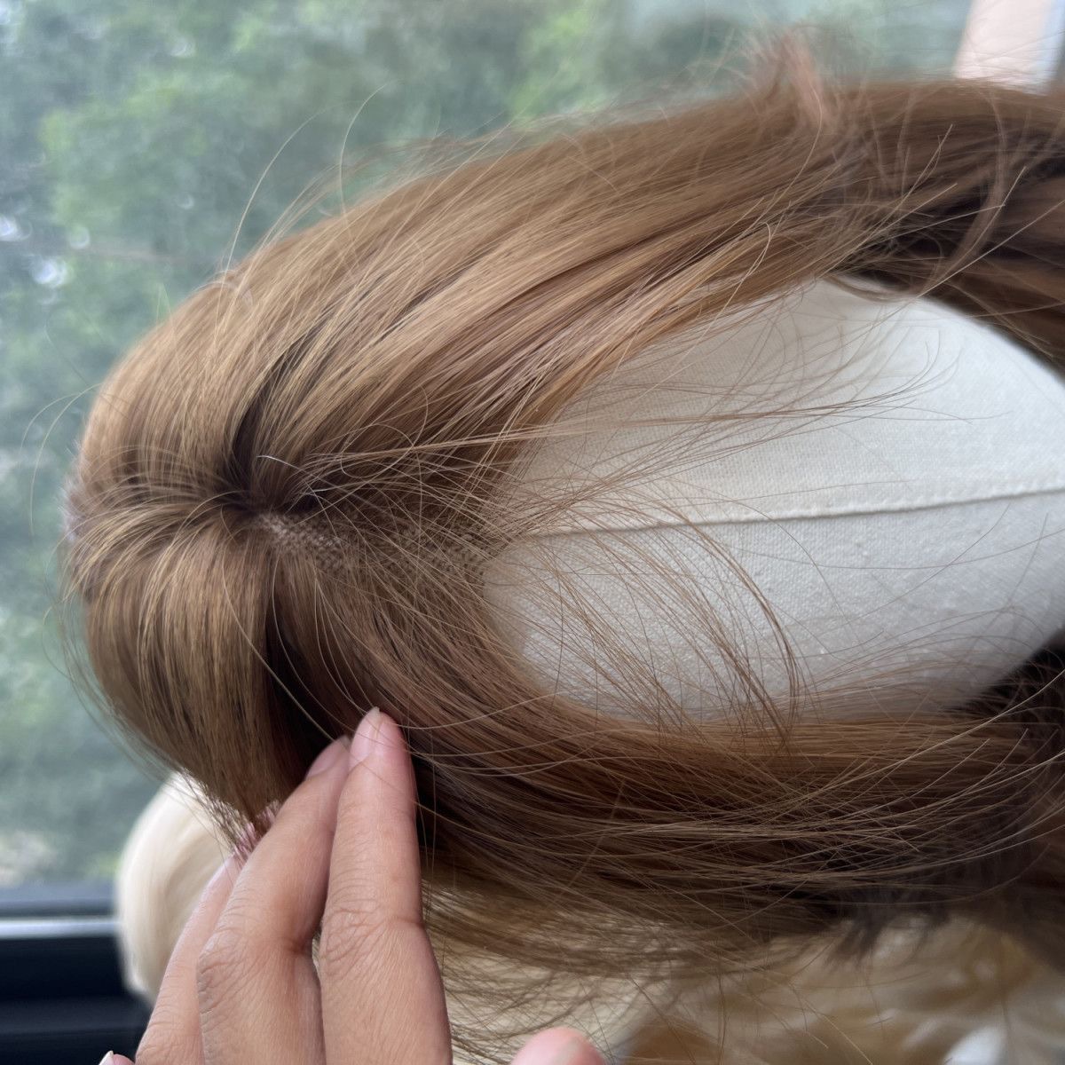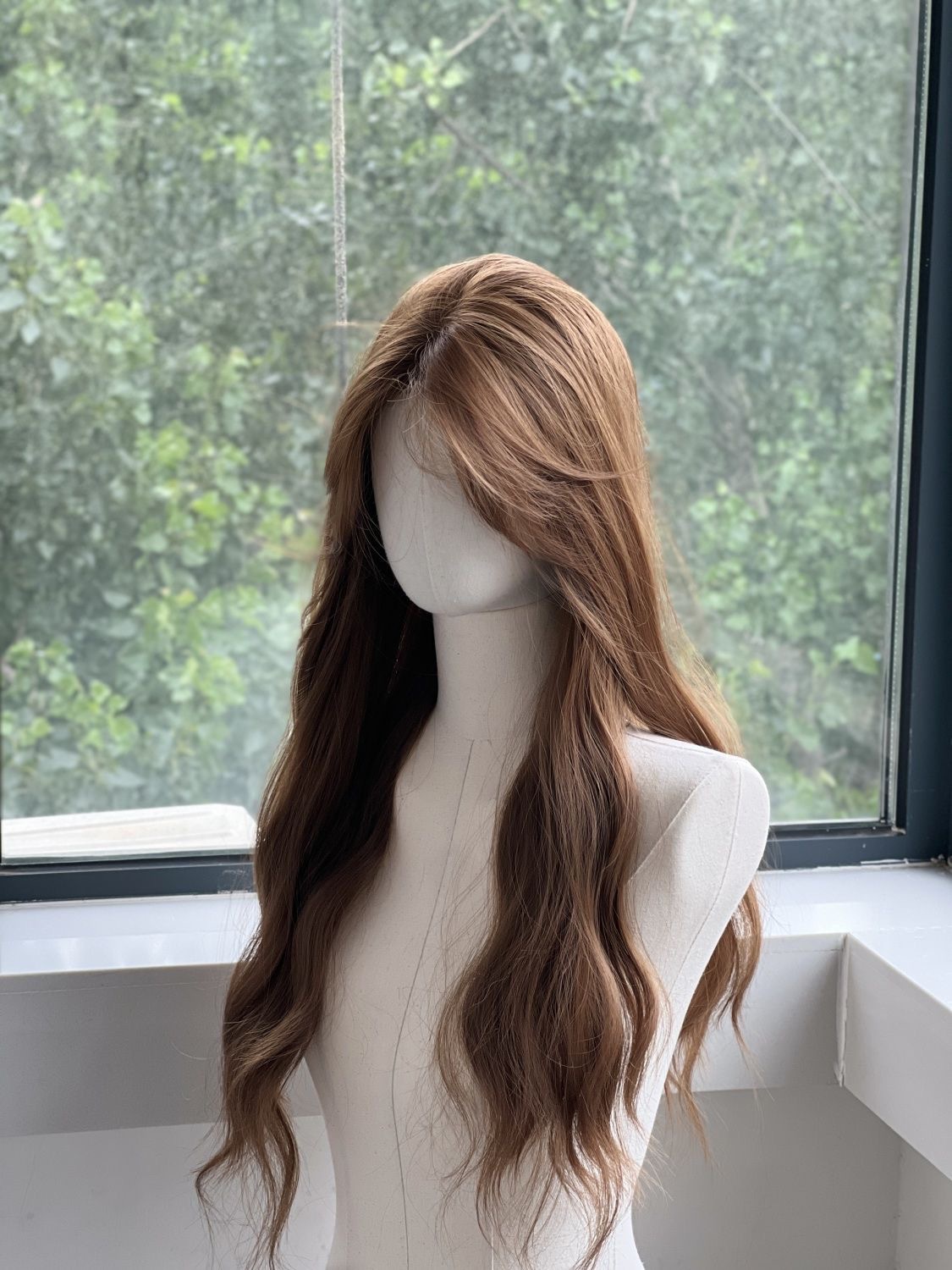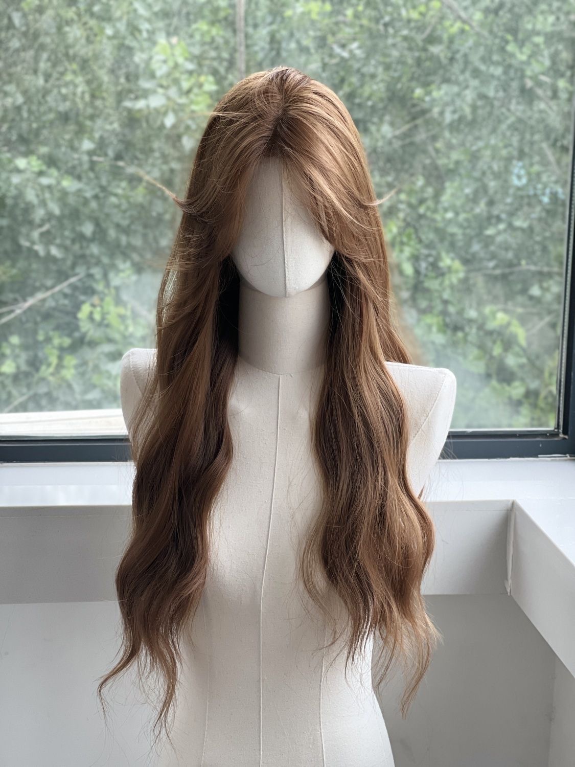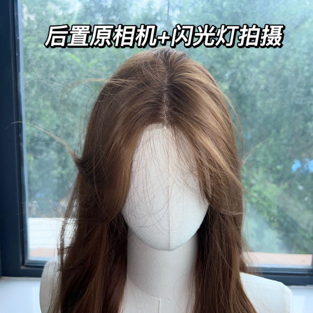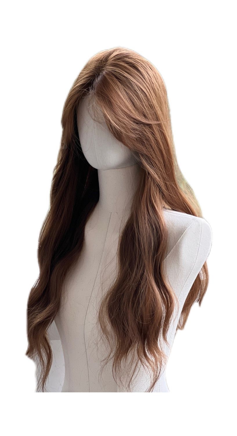 Peruca de cabeza completa de mujer imitación de encaje lino dorado marrón agua ondulado peruca transpirable, ligera y natural
