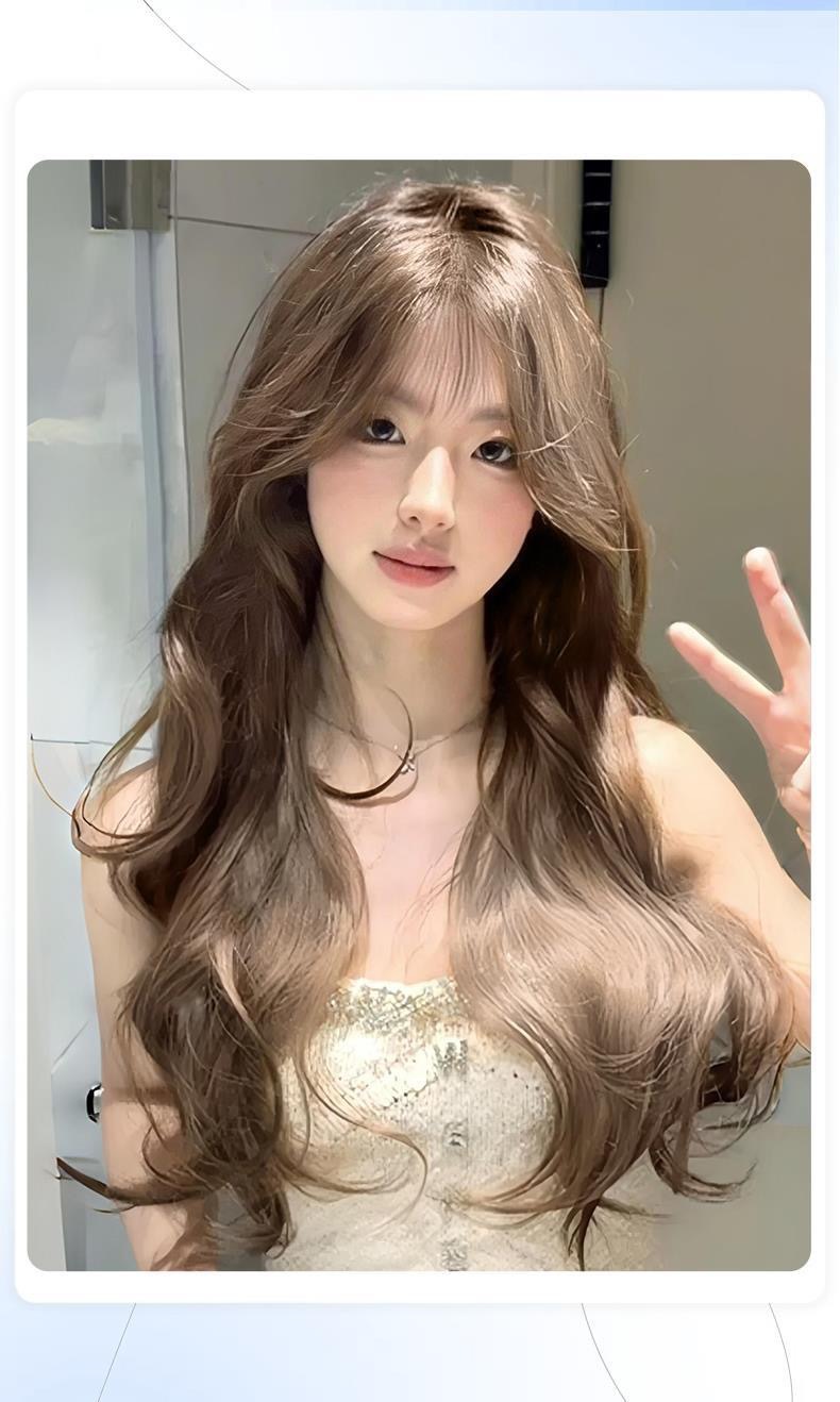 Peruca femenina leche té gris marrón ondas diarias sensación de cabello rizado largo cubierta de cabeza