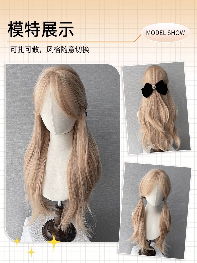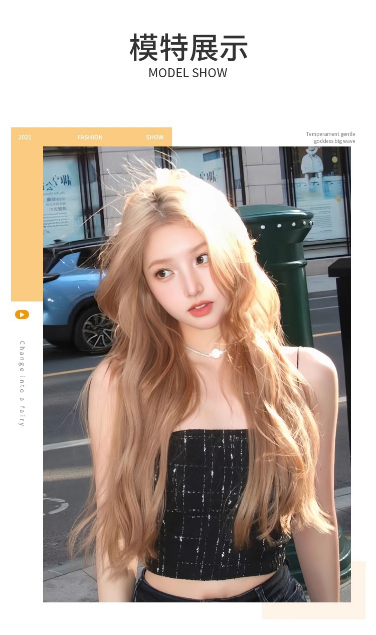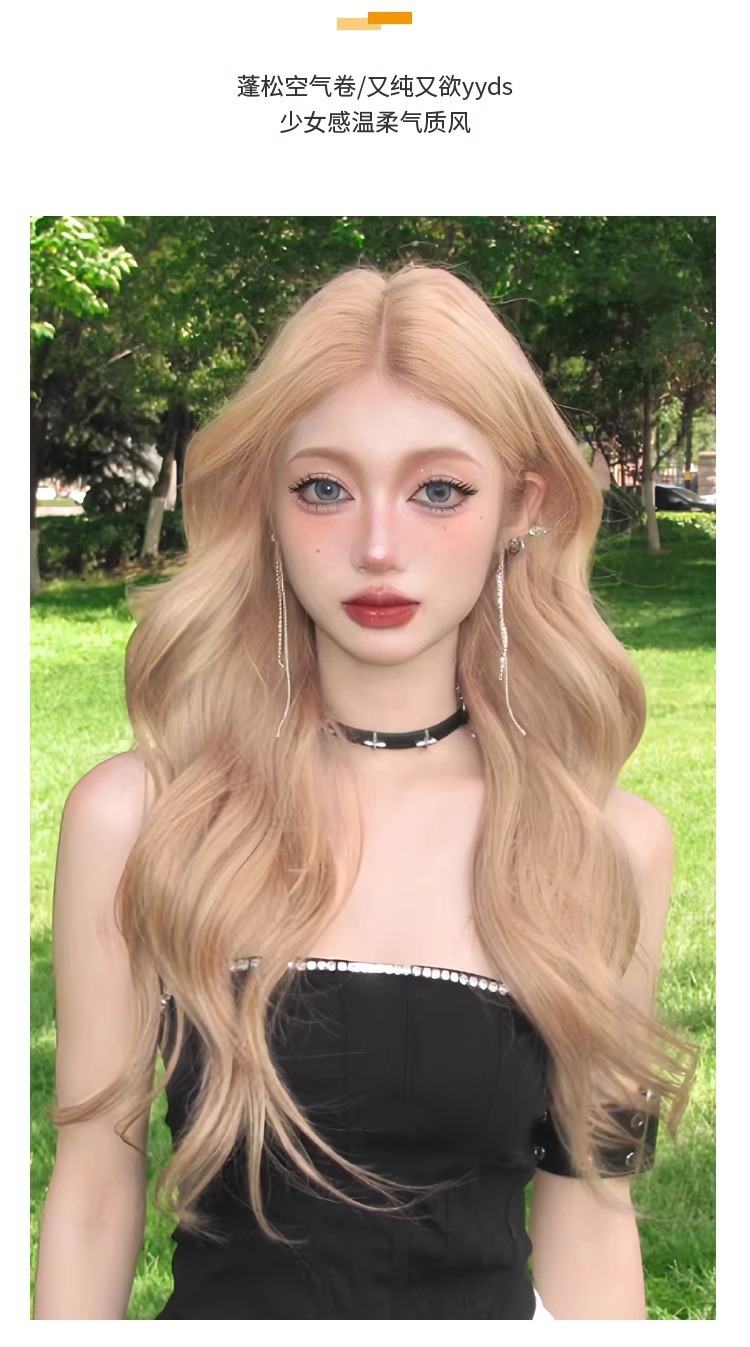 Peruca de cabello largo rubio blanco gran onda diario de mujer extraña simulación de cabello rizado largo cabello rizado cubierta de cabeza completa