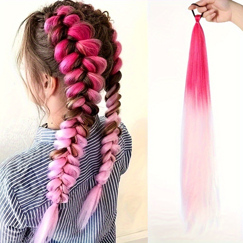 2 piezas de paquete de niños niñas pelucas de cola de caballo elásticas de boxeo trenzas de cuerda elástica de color trenzas de cabello extensiones de pelo