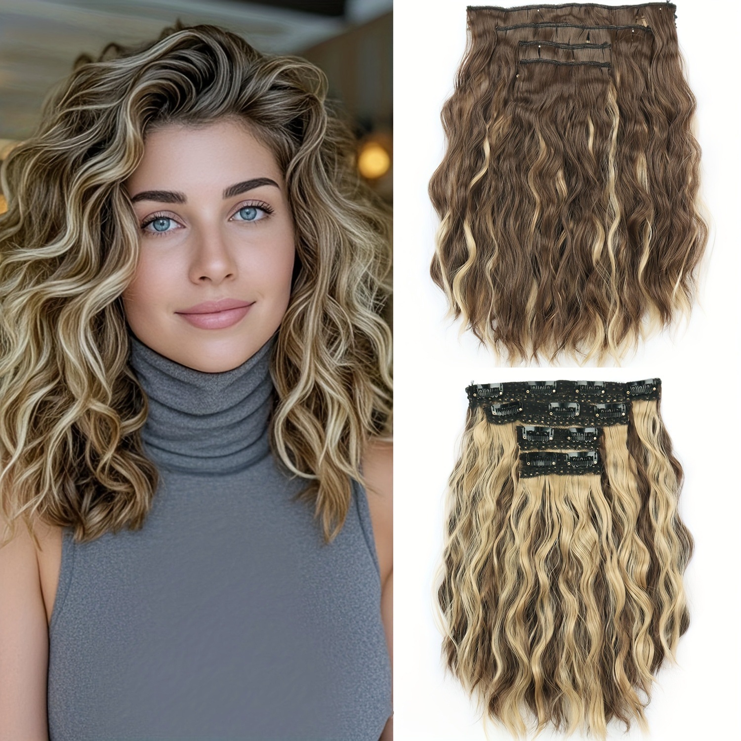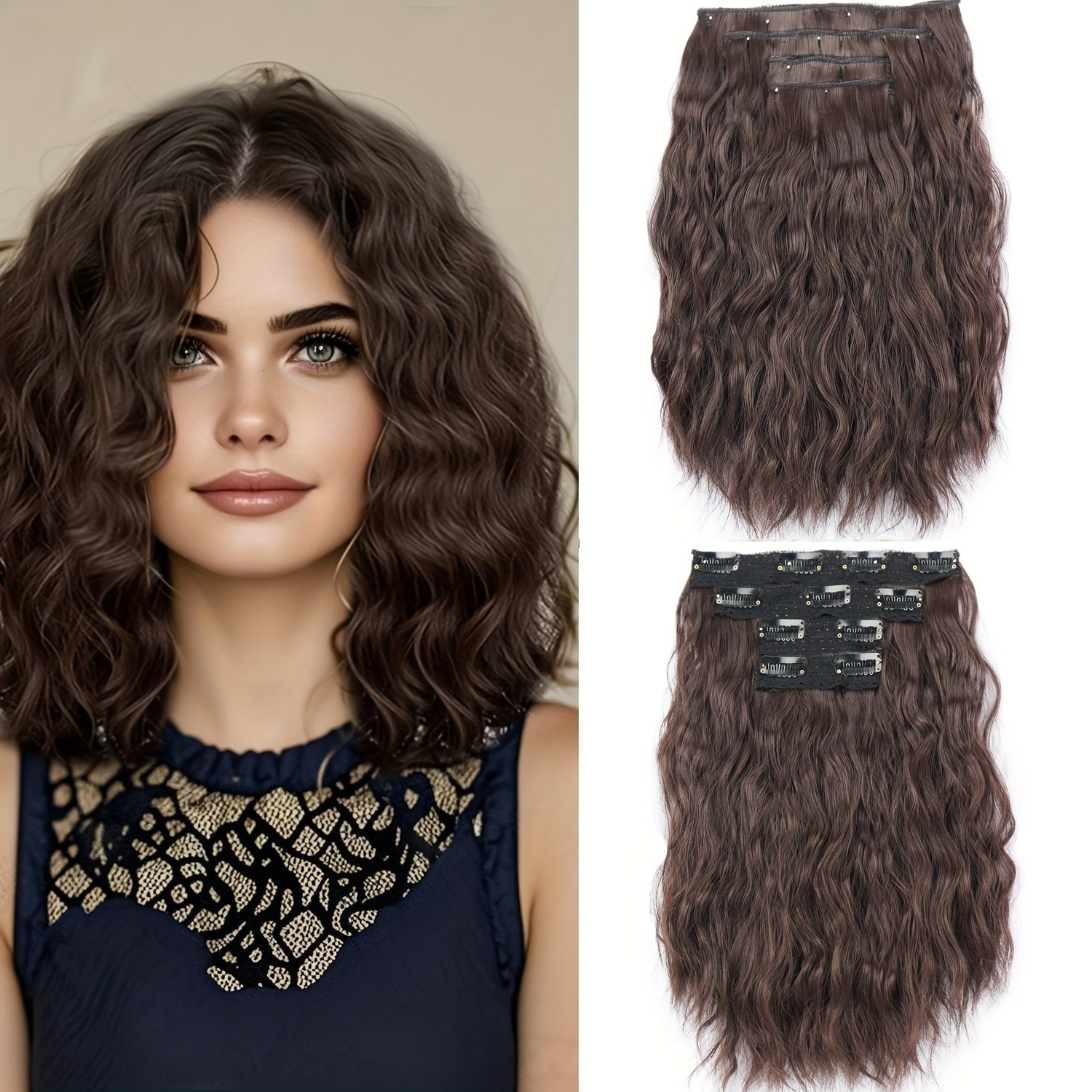 Comercio exterior transfronterizo 4 piezas de clip cabello ondulado peluca extensión de cabello corto ondulado al por mayor