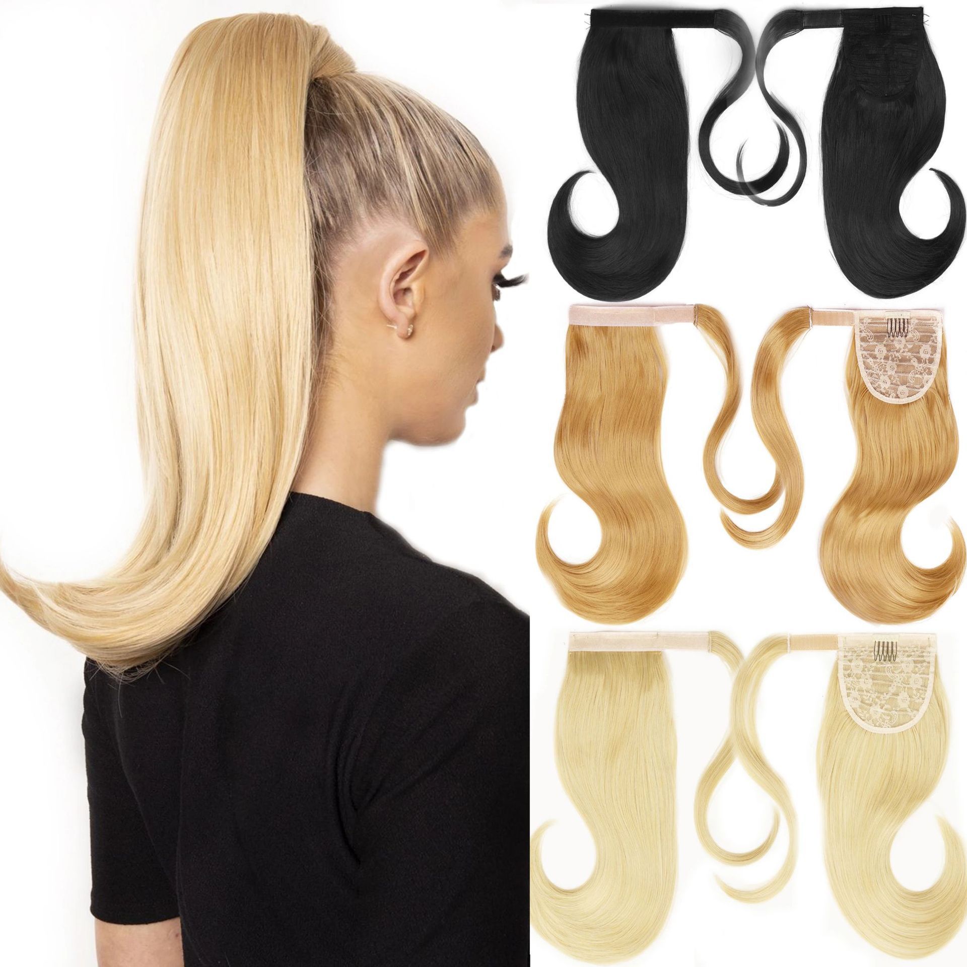 Velcro cola de caballo europea y americana cola de caballo ligeramente torcida falsa fibra química cola de caballo alta peluca