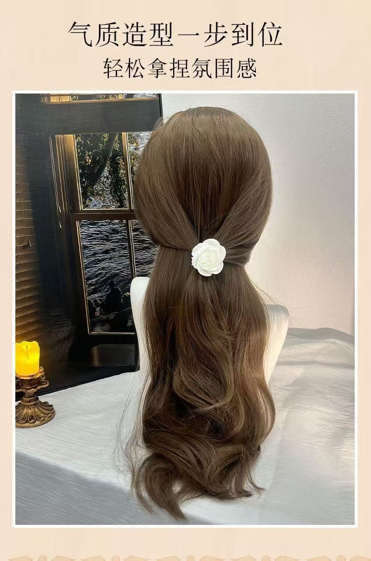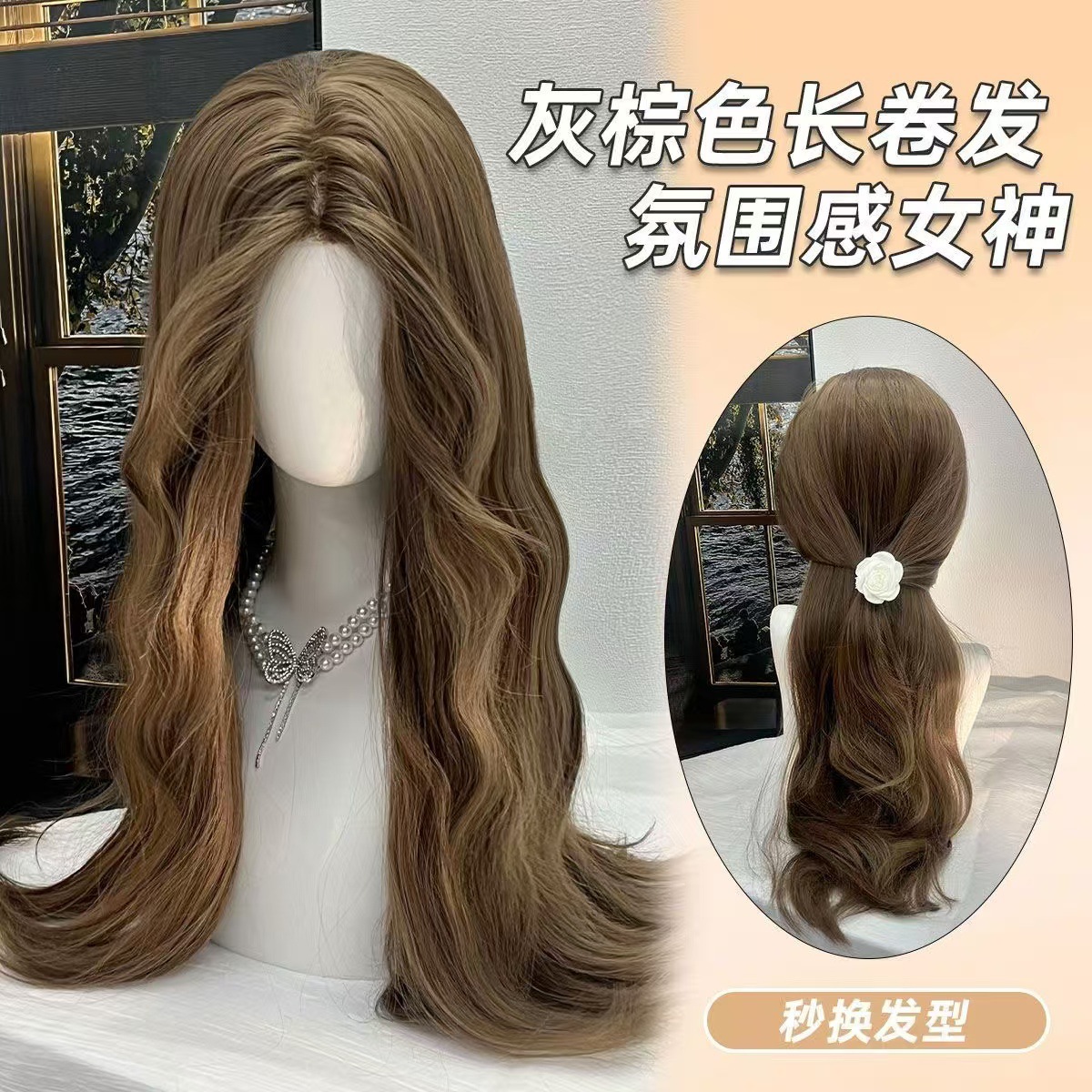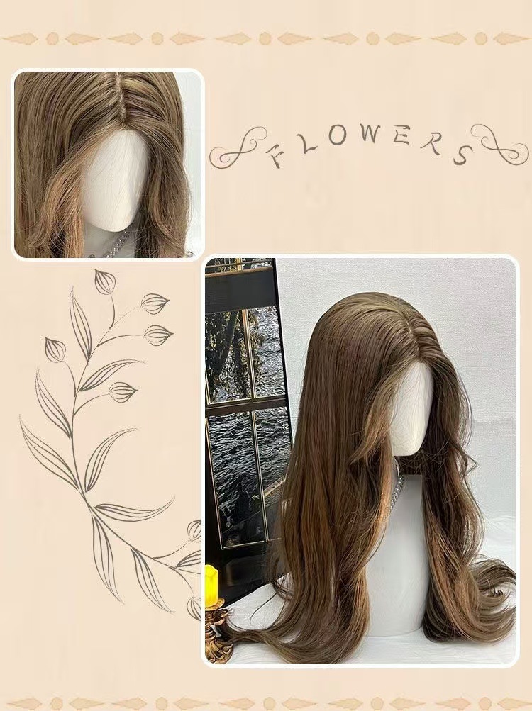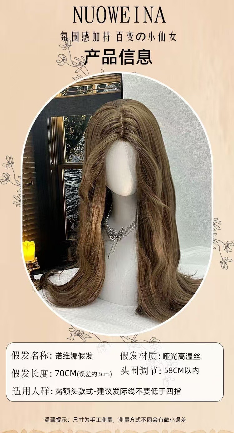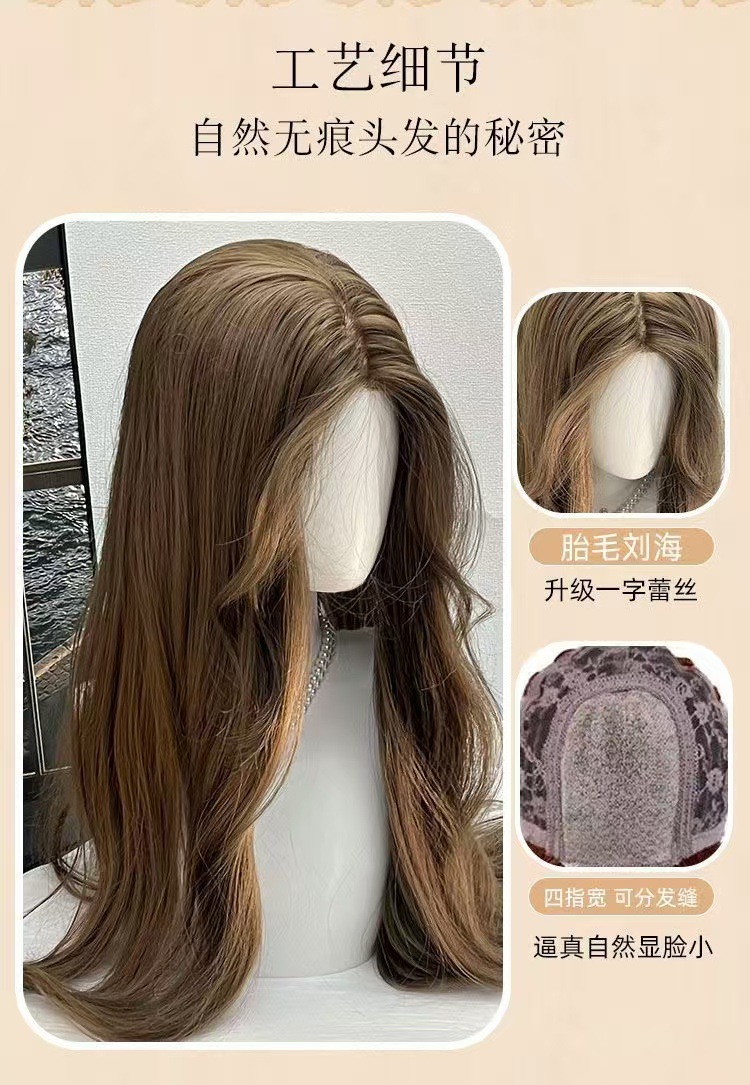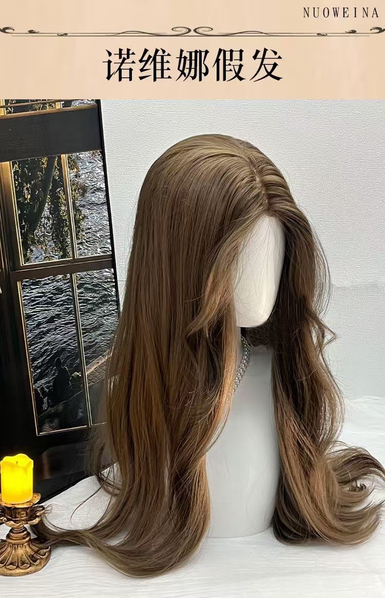 Frío marrón largo rizado gancho de mano frente encaje rojo marino blanco sensación de atmósfera natural peluca A04