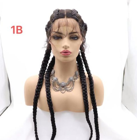 Europa y los Estados Unidos comercio electrónico transfronterizo Amazon frente encaje cuatro trenzas grandes trenzas europeas y los Estados Unidos pelucas negras en stock 0033