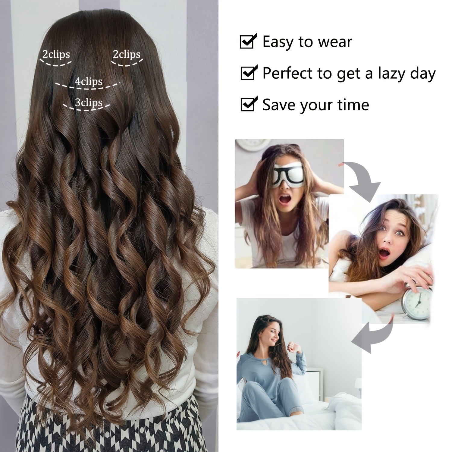 Extensiones de cabello de fibra química de damas europeas y americanas 4 piezas de cabello largo rizado retrógrado estilo de la República Popular de la Peruca romana