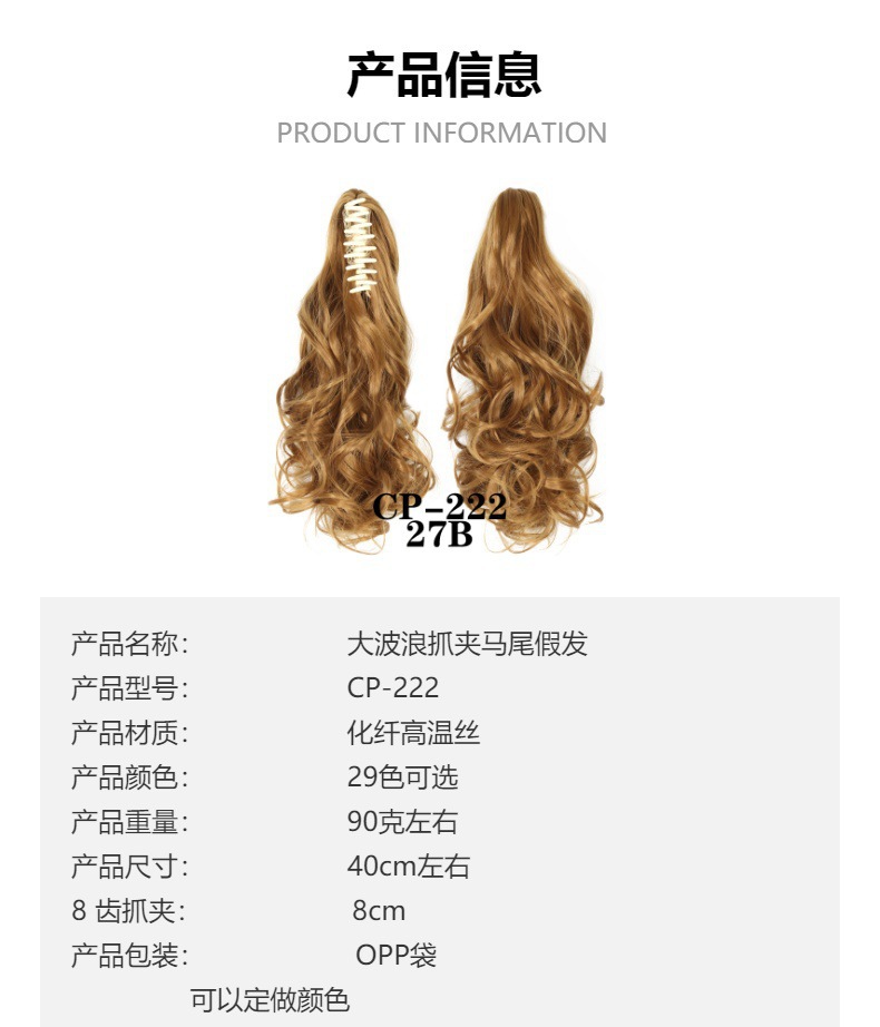 Europa y América pelucas mujeres agarrar clip de cola de caballo 8 dientes ondas grandes pelucas de caballo de caballo corto cabello natural flojo fábrica en stock