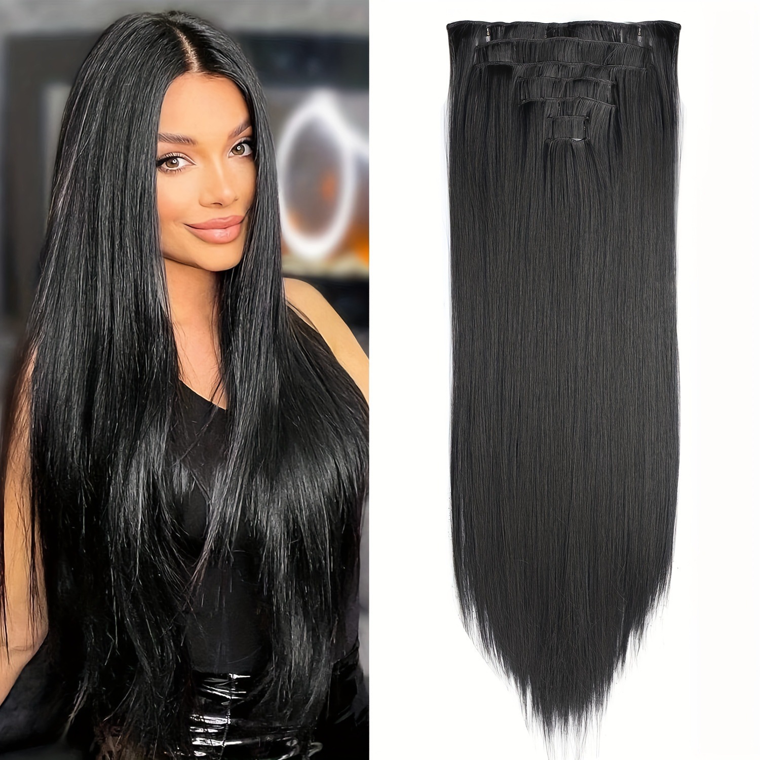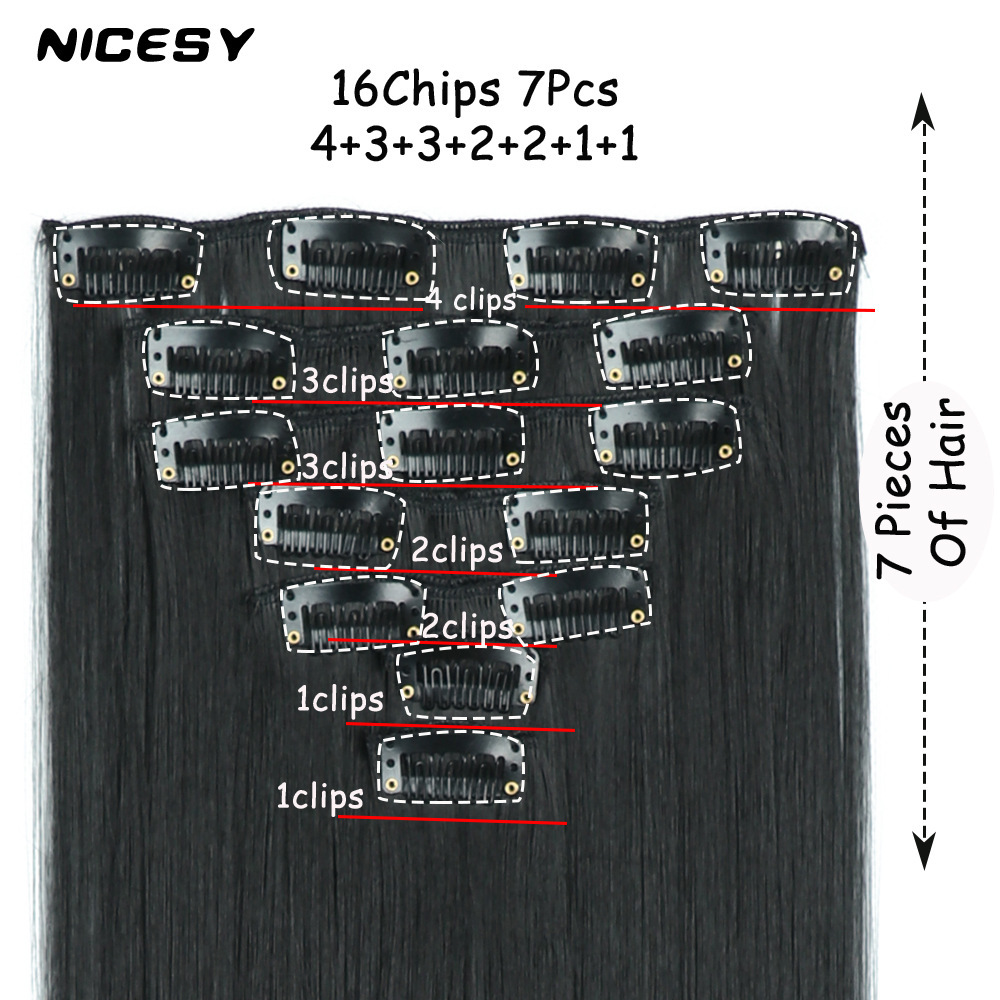 16 tarjetas de siete piezas de cabello de fijación peluca de fibra química europea y americana para mujeres peluca de fijación de cabello conjunto de cabello largo extensión de cabello recto