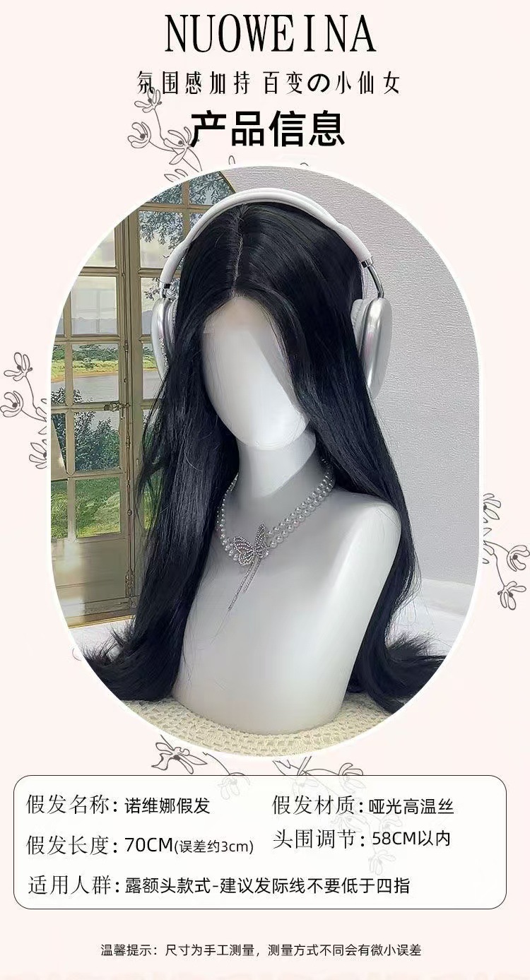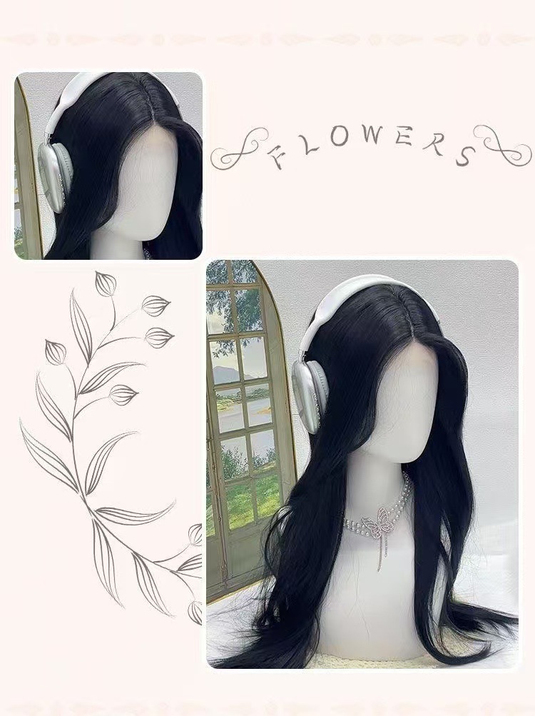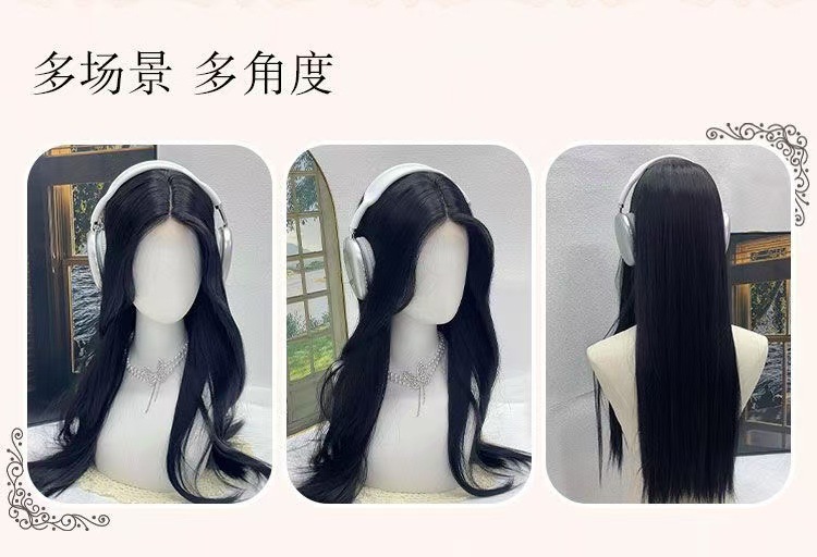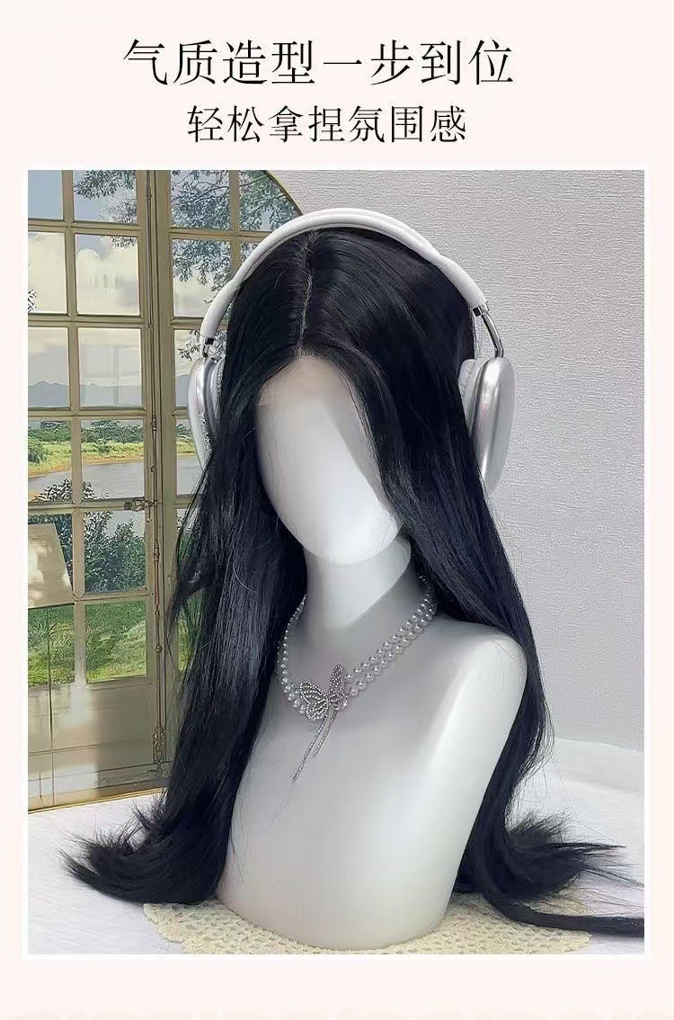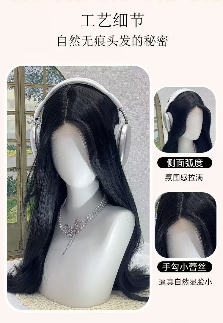 Negro largo recto cabello rizado gancho de mano frente encaje blanqueamiento atmósfera natural peluca A08