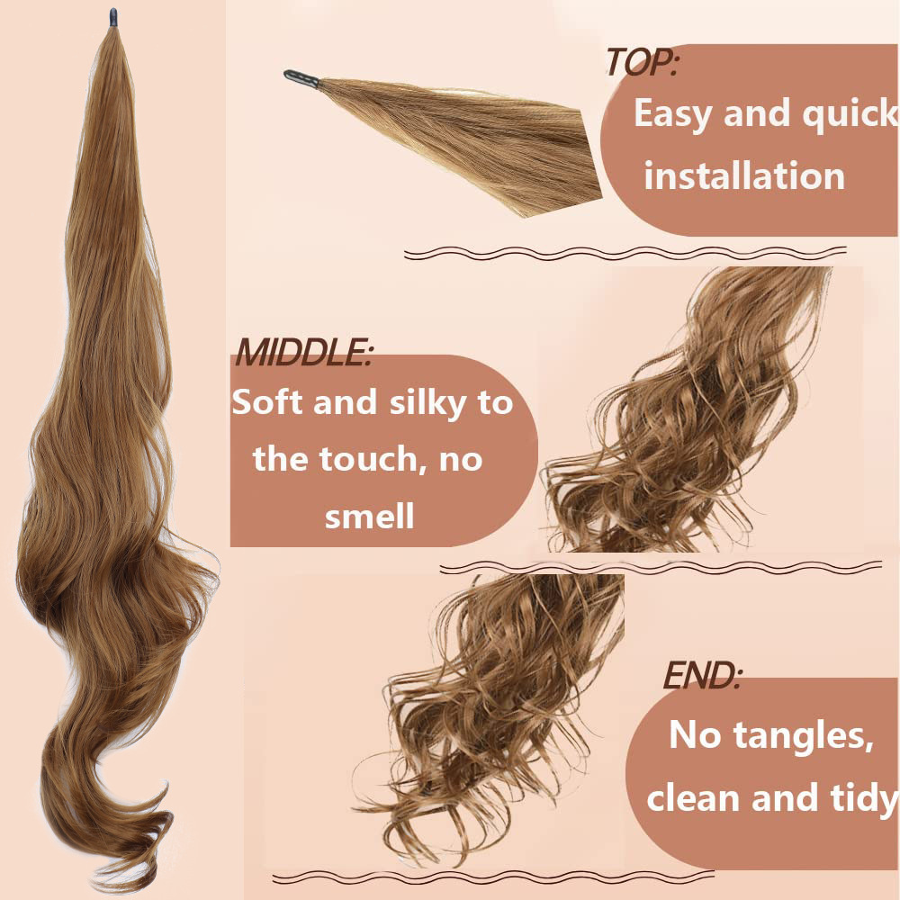 28 pulgadas largas pelucas de cola de caballo europeas y estadounidenses alrededor extensión de cabello de cola de caballo barra de cabello