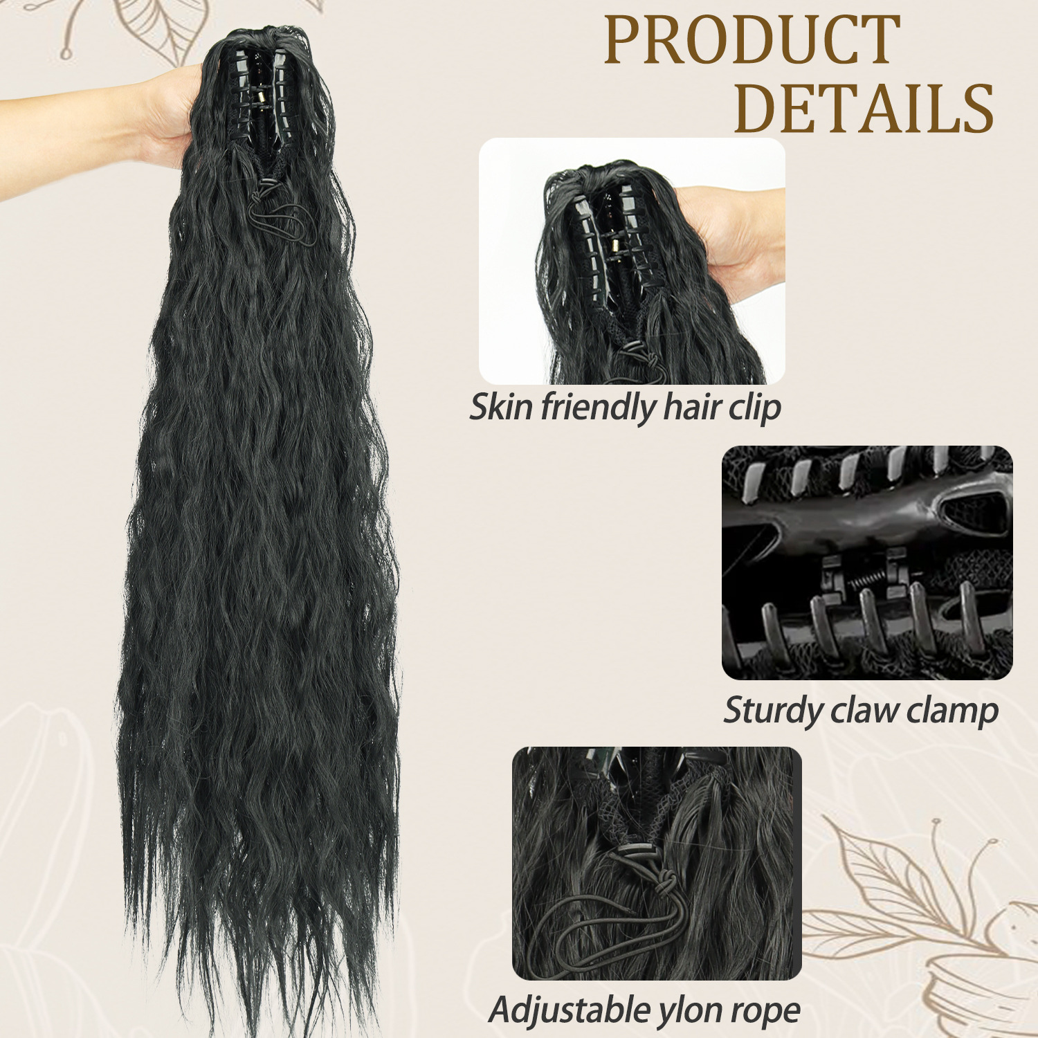 Xuchang wig clip de agua de cola de caballo ondulado cabello rizado largo cabello rizado largo cabello rizado cabello rizado largo cabello rizado Amazon wig transfronterizo