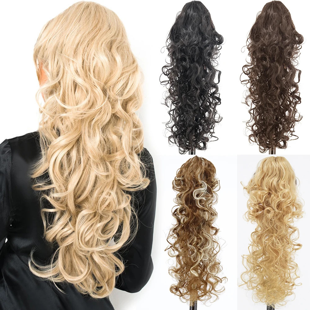 Perruca alta cola de caballo mujer 22 pulgadas clip de garra rizado largo temperamento grande cola de caballo ondulada