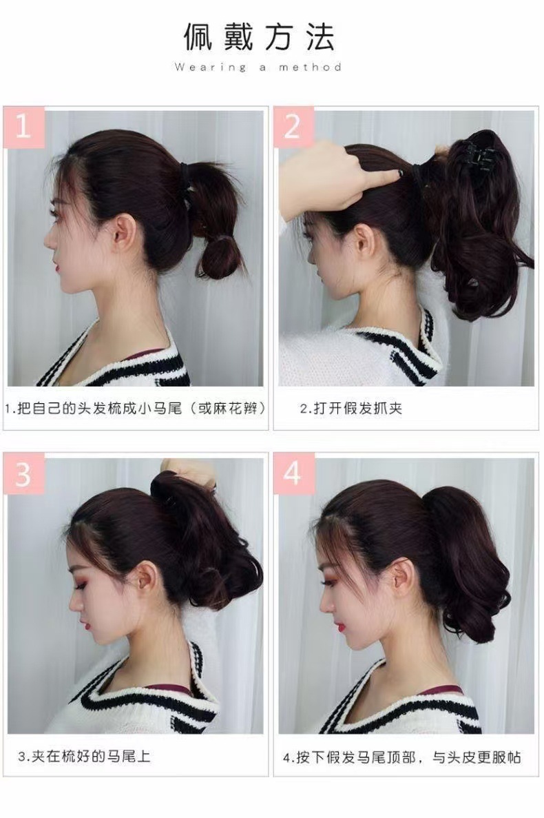 Pear flower roll corto mate cauda de caballo peluca estilo de mujer agarrar clips natural cabello largo realista alto suave rizos natural realista