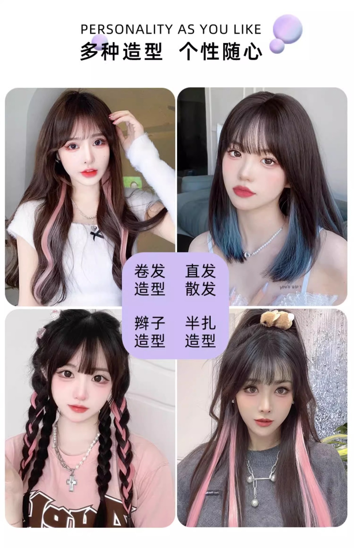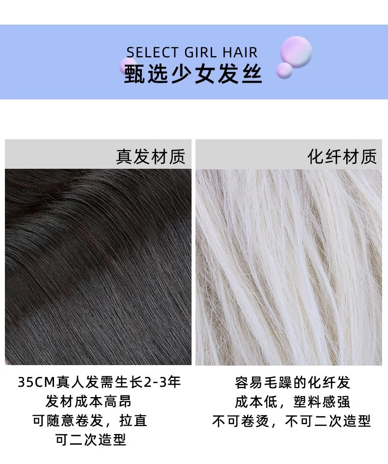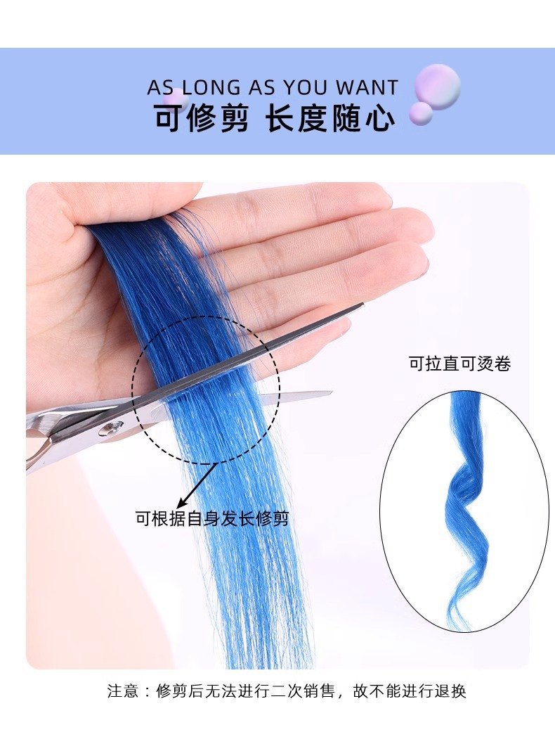 | Longitud del cabello | Monocromático de unos 35 CM / degradado de unos 30 cm |