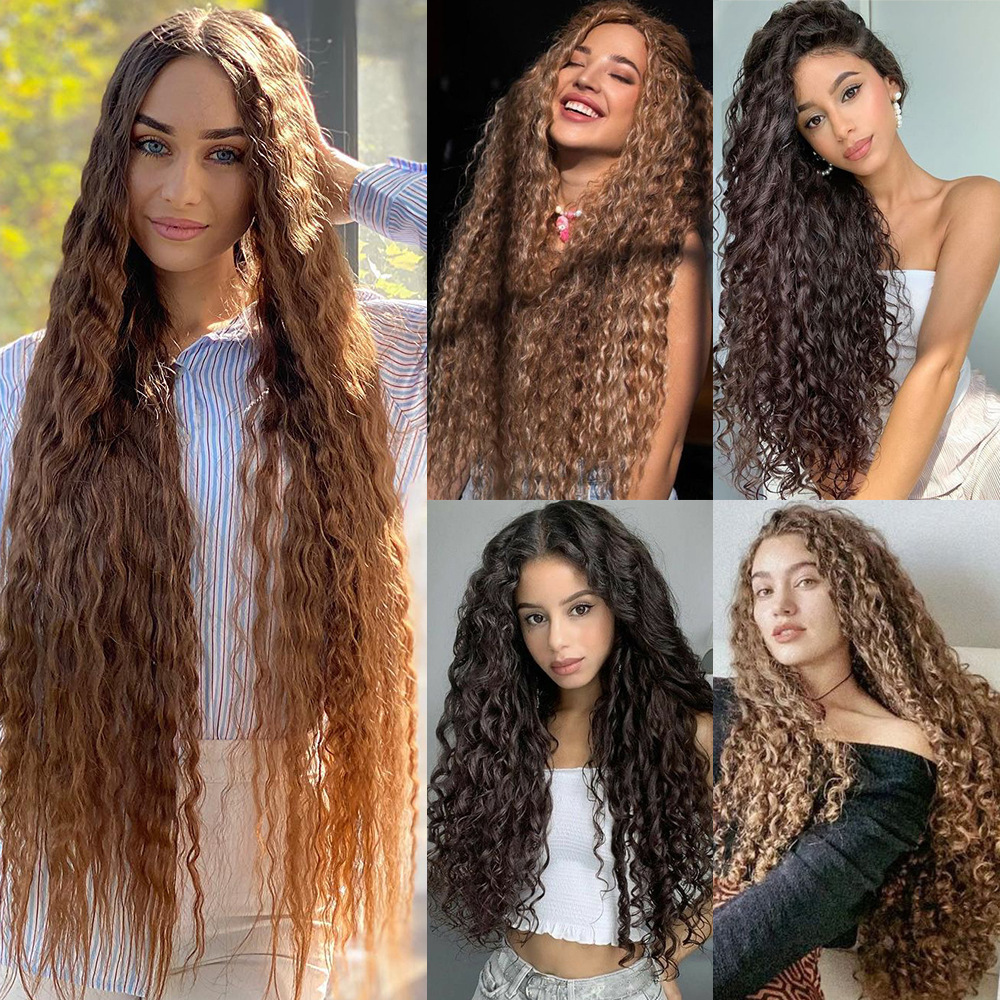 Peruca de cabello de mujer estilo de maíz caliente rizado largo de cabello de onda de cinco tarjetas