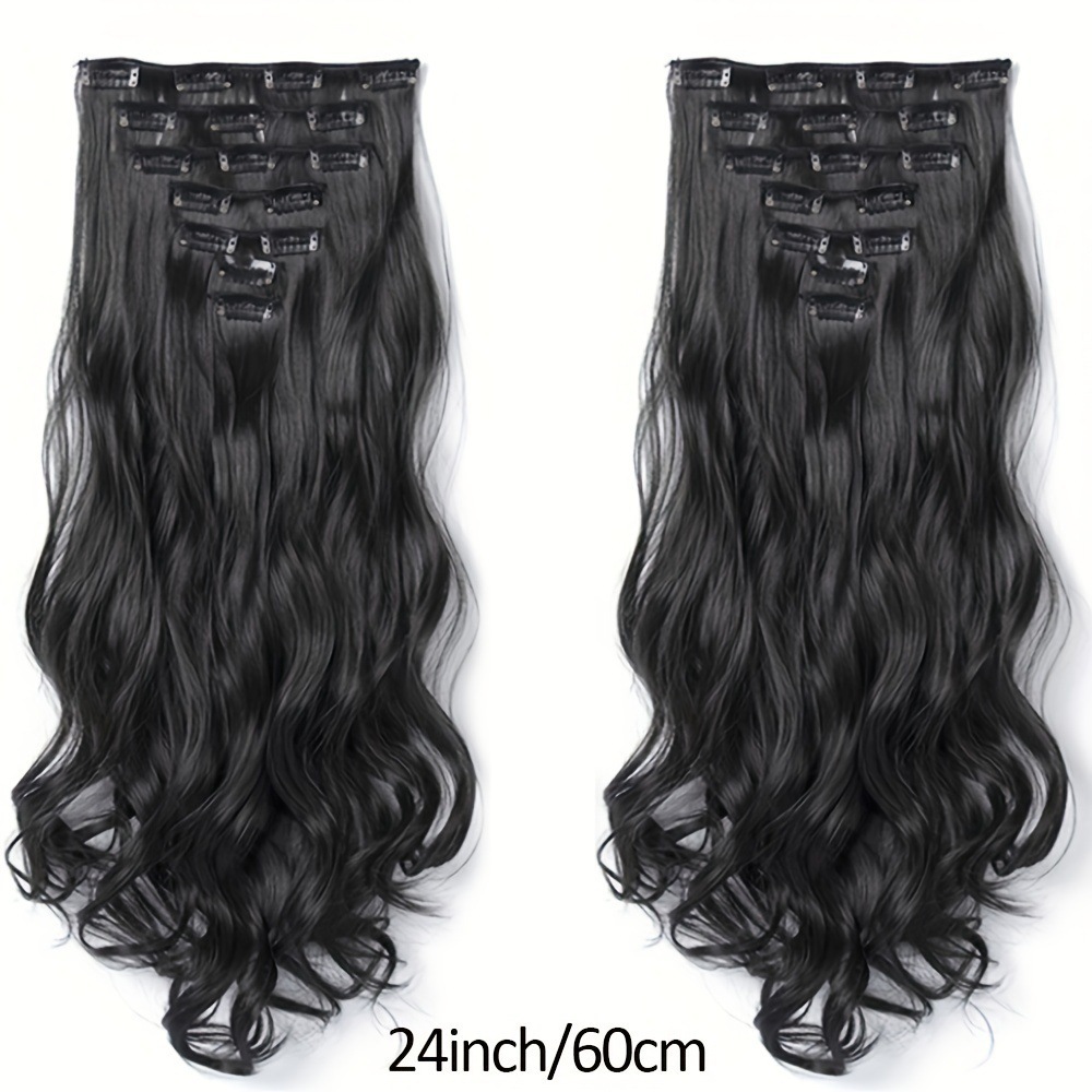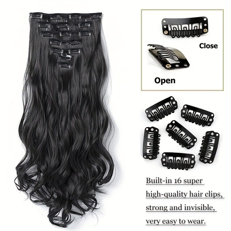 16 tarjetas de fibra química larga extensión de cabello rizado gran onda de cabello rizado siete piezas de cabello clip