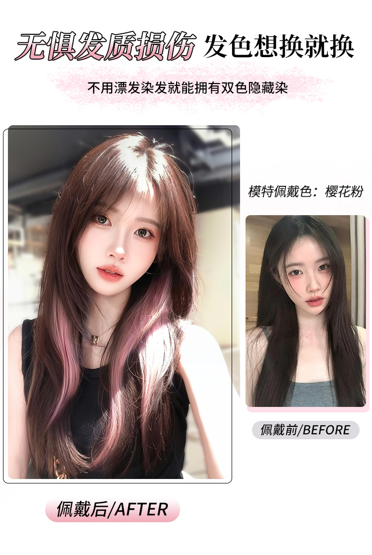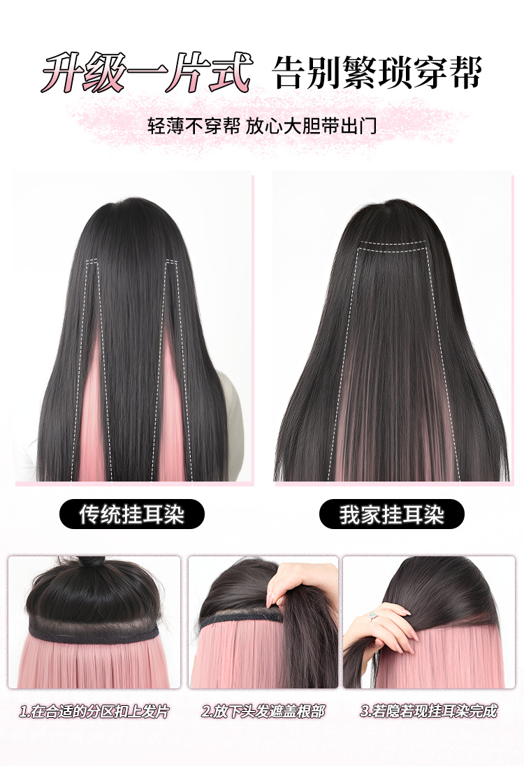 Colgar orejas teñido pelucina de cabello para mujer una pieza de dopamina color gradiente pelucina sin rastro aumento de cabello de cabello