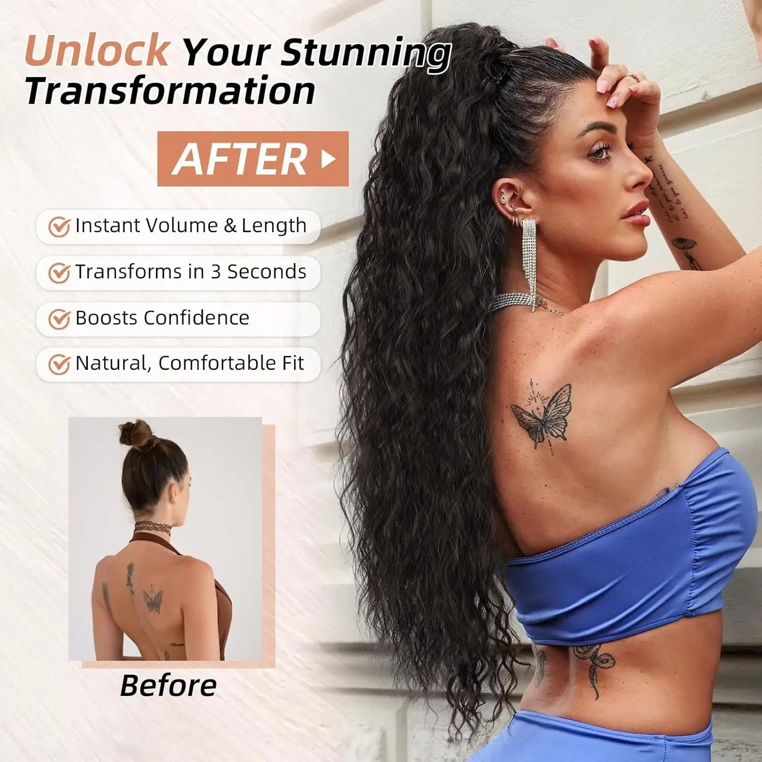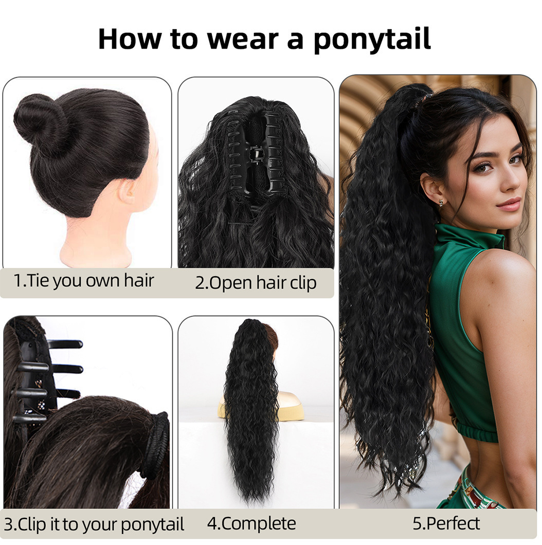 30 pulgadas Xuchang Europa y Estados Unidos pelucas transfronterizas cola de caballo mujeres onduladas onduladas cabello rizado flojo maíz extensión de cabello agarrar clip caballo