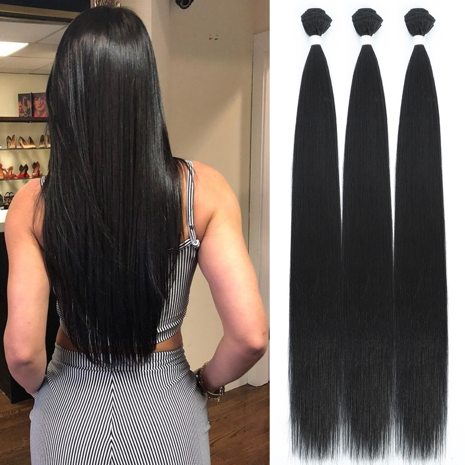 Europa, América y África transfronterizos Synthetic Straight Hair Bundle peluca recta extensión de cabello cortina