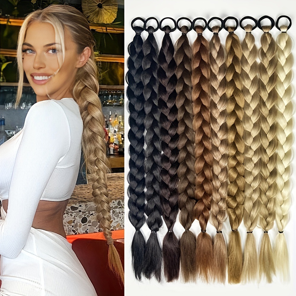Trenzas de trenza de caballo fibra química larga trenzas de trenza de caballo anillo de pelo peluca de trenza de caballo peluca europea y americana