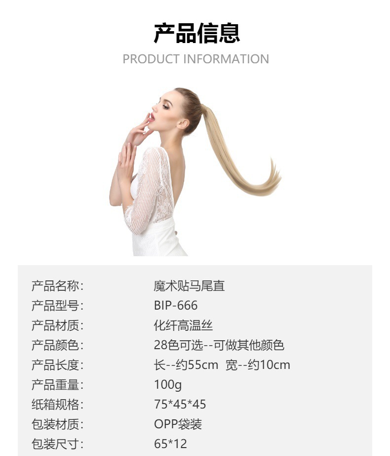 Perucas europeas y americanas de cola de caballo, cabello recto largo, velcro de cola de caballo, fibra química de cola de caballo, 100g.