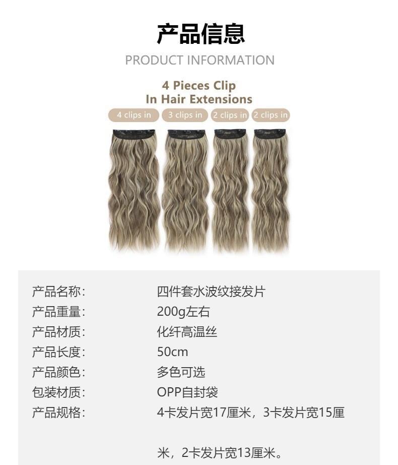 Transfronterizos Europeos y estadounidenses pelucas de cabello de cabello de cuatro piezas de cabello de cabello de fibra química extensión de cabello al por mayor estilo europeo y americano