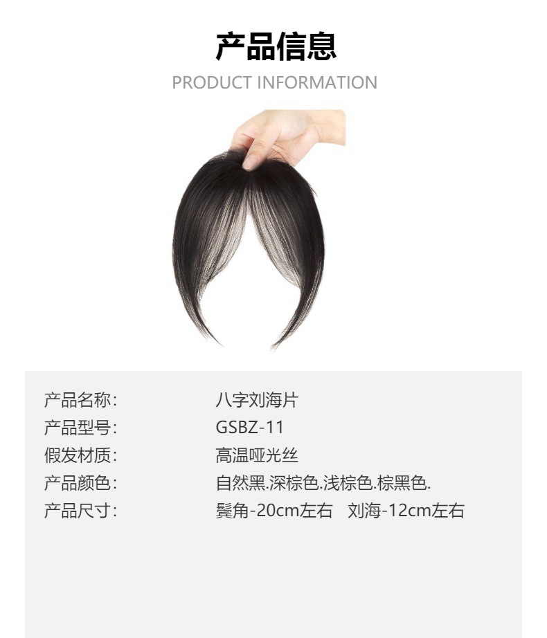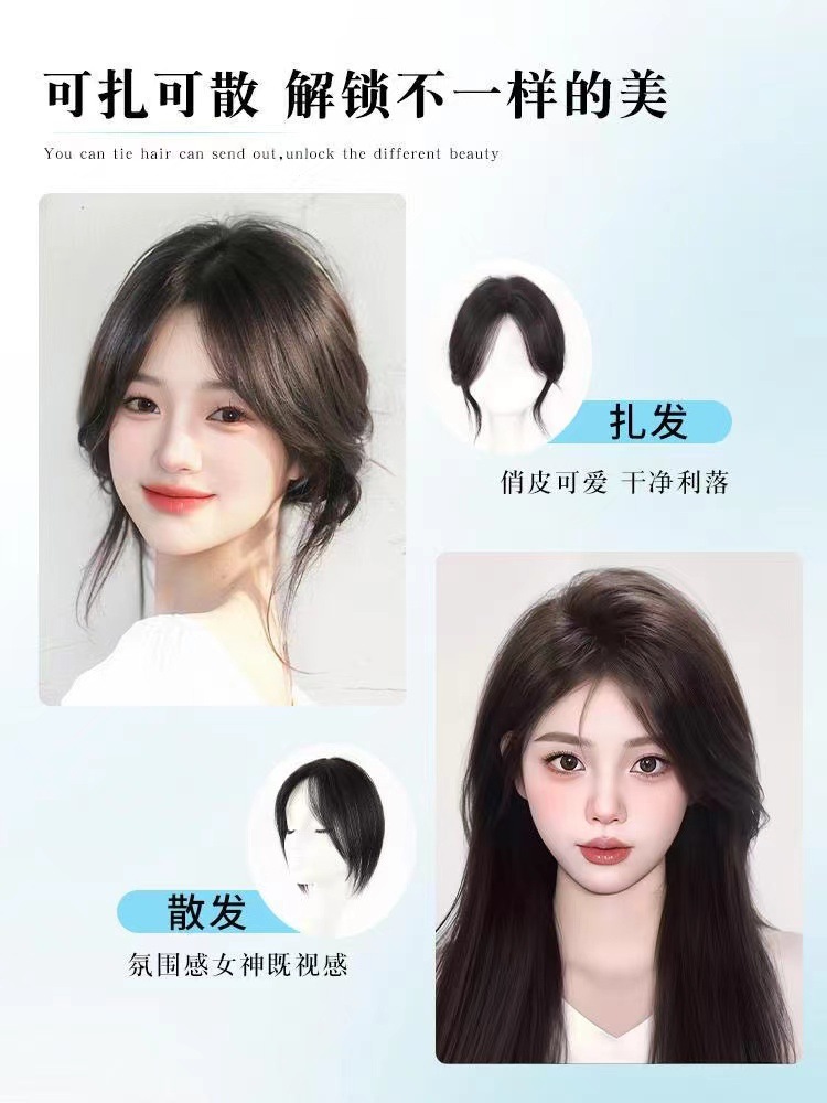 Ocho caracteres pelucina de peluca de la cabeza femenina para aumentar la cantidad de cabello de mejora de la frente estilo francés aire Qi franja aire franja franja