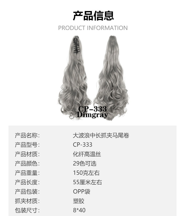 Europa y los Estados Unidos pelucas ondas largas pelucas de fibra química agarrar clip de cabello rizado garra de caballo 8 dientes fábrica de cola de caballo en stock