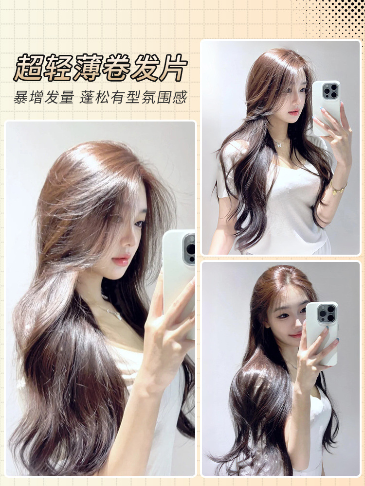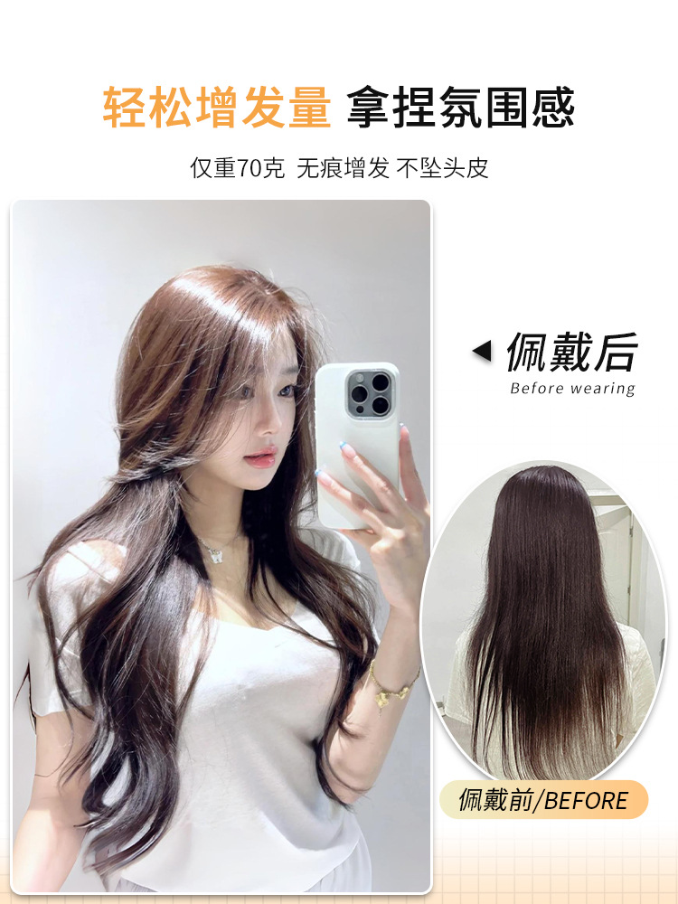 Peruca de cabello ultraligera y delgada con cabello rizado largo para aumentar la cantidad de cabello en la parte superior de la cabeza, artefacto mágico suelto tipo pieza invisible sin marcas