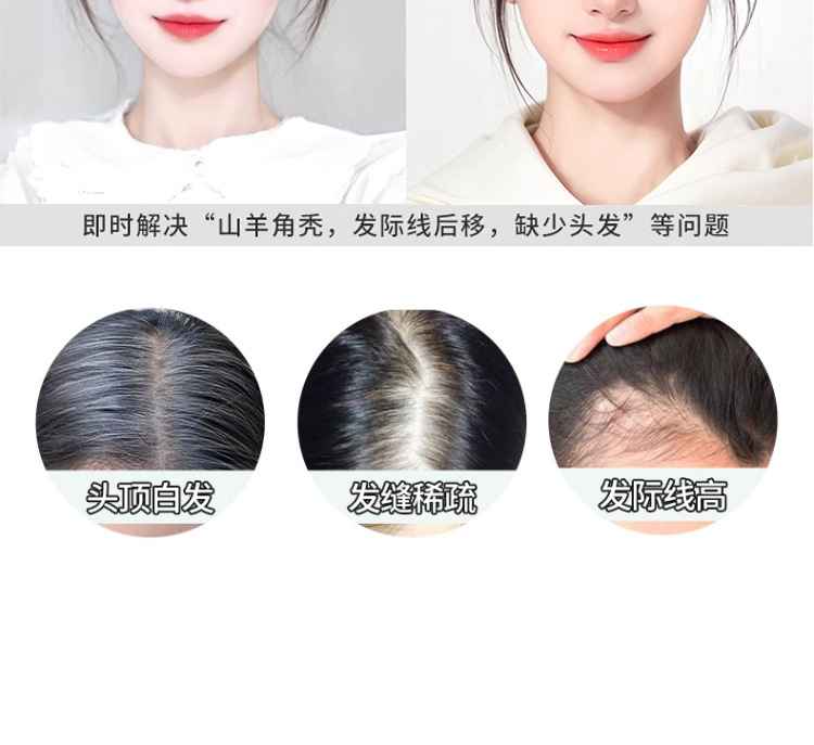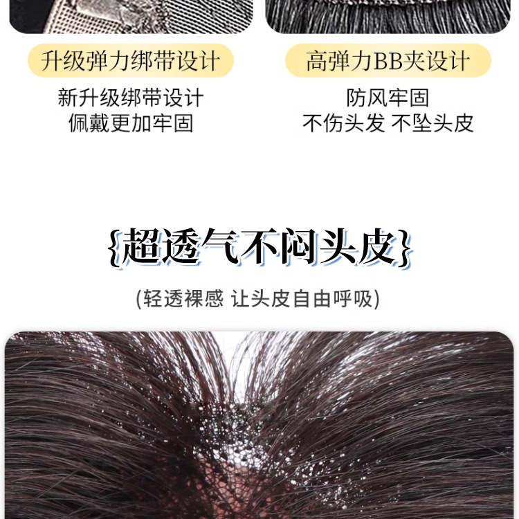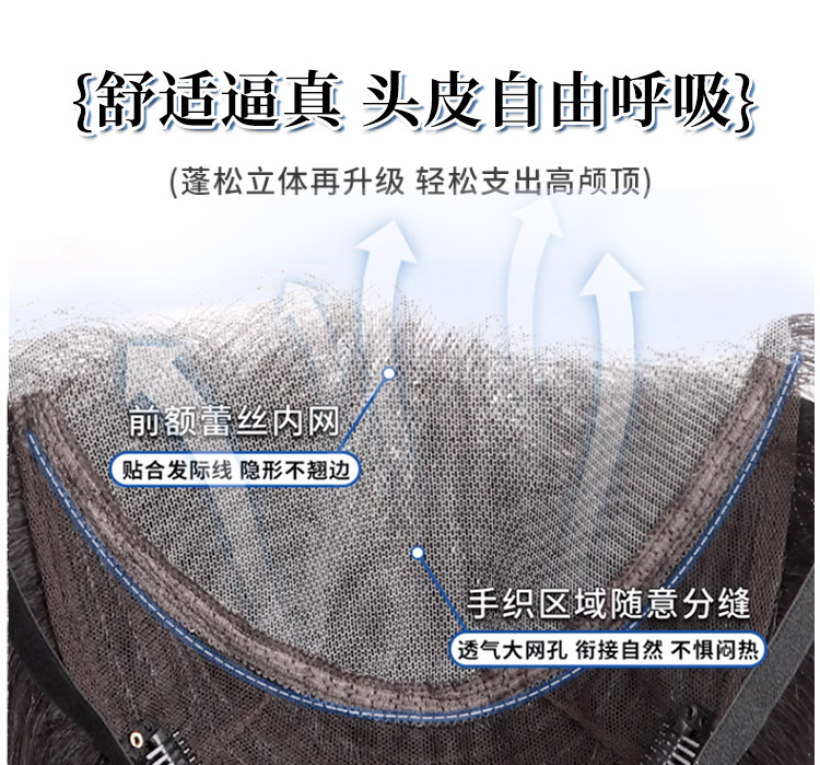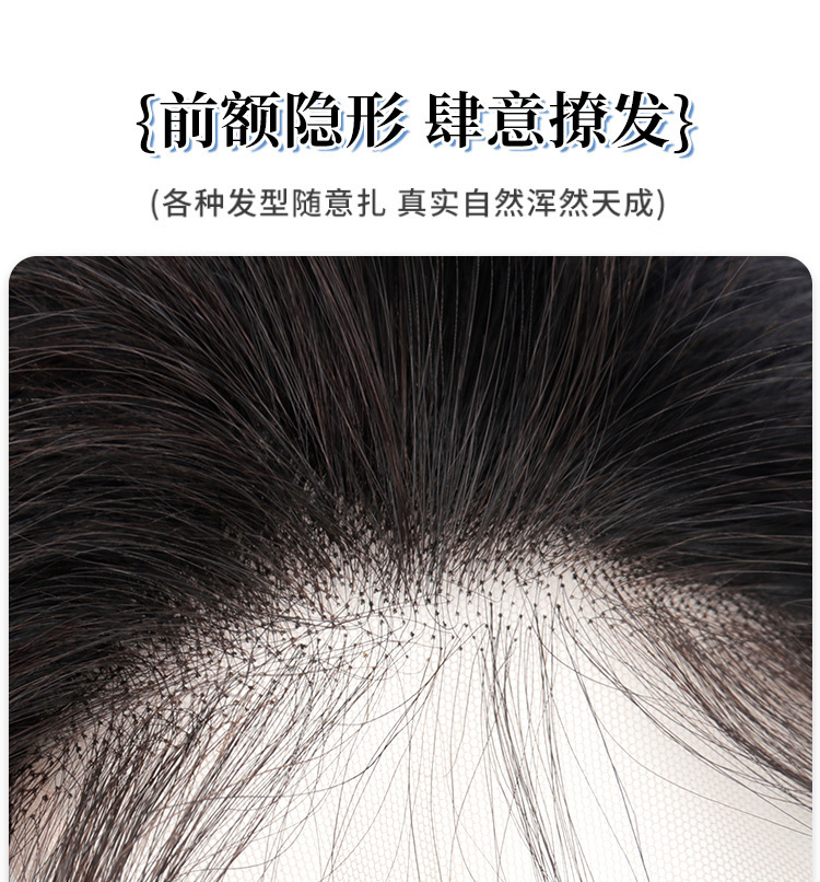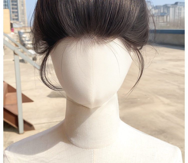 Pelucas de cabello para mujeres en la parte superior de la frente invisible sin marcas de malla de encaje para cubrir el cabello blanco y flácido, aumento del cabello completo de cabello humano real.