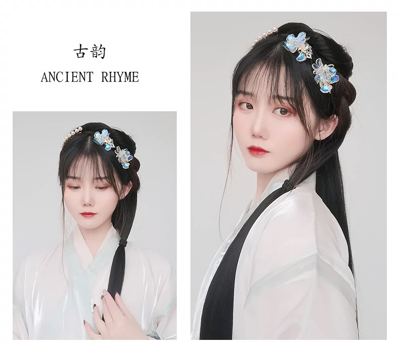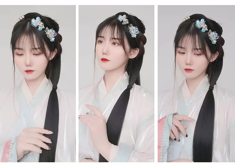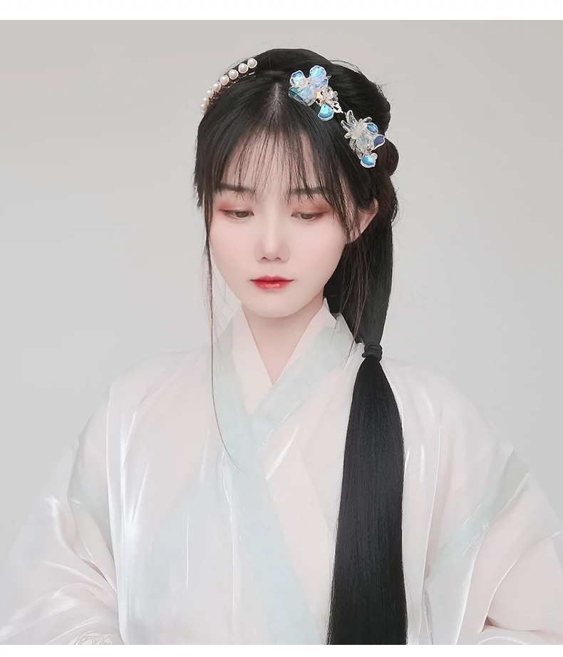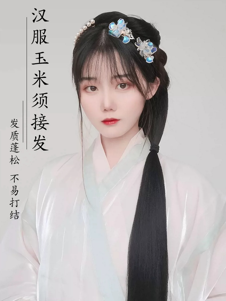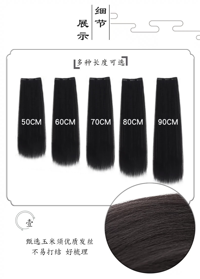 Hanfu imitación pieza de cabello estilo antiguo extensión de cabello de mujer tipo una pieza de cabello de maíz pieza de cabello recto modelado antiguo cabello de disco