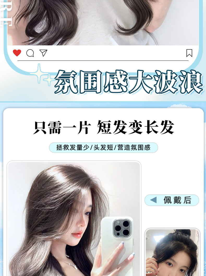 Perucas onduladas largas rizos de una pieza de cabello invisible extensión de cabello peludo peludo femenino peludo simulado peludo