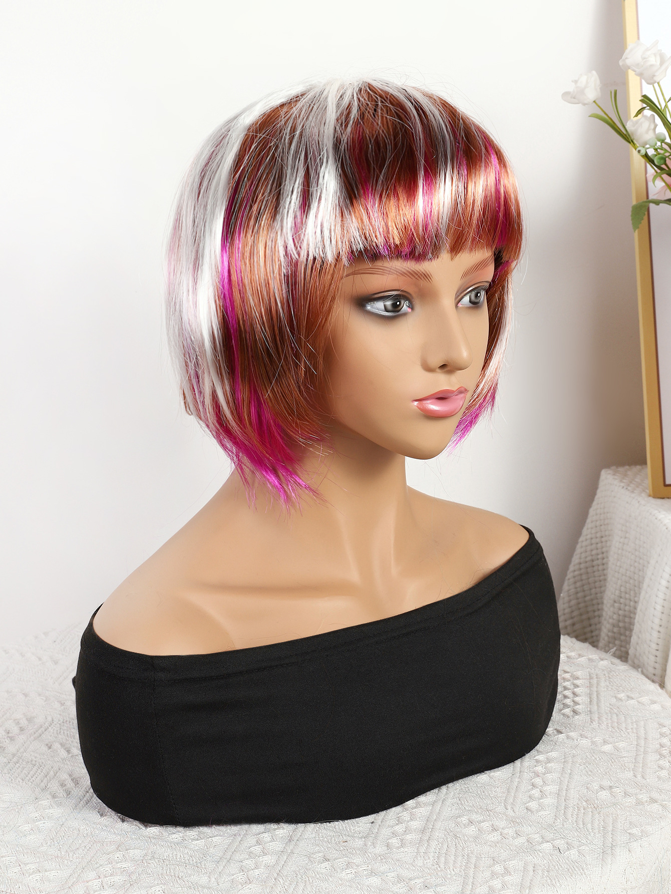 Transfronterizo nuevo color marrón plateado mezcla gradiente largo recto 12 pulgadas sin encaje pelo recto europeo y americano peluca brasileña